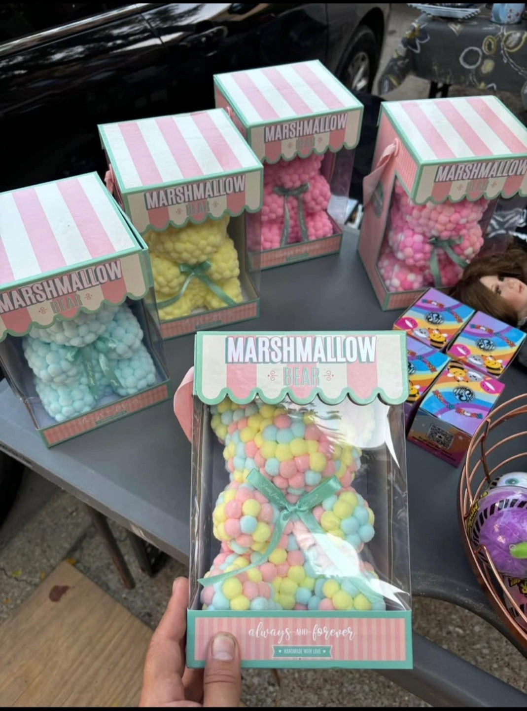 These adorable Marshmallow Bears are handmade with love and come in a variety of colors! Each bear is carefully crafted and comes in its own cute box. Perfect as a gift or a sweet treat for yourself! $20 each $80 for all 5