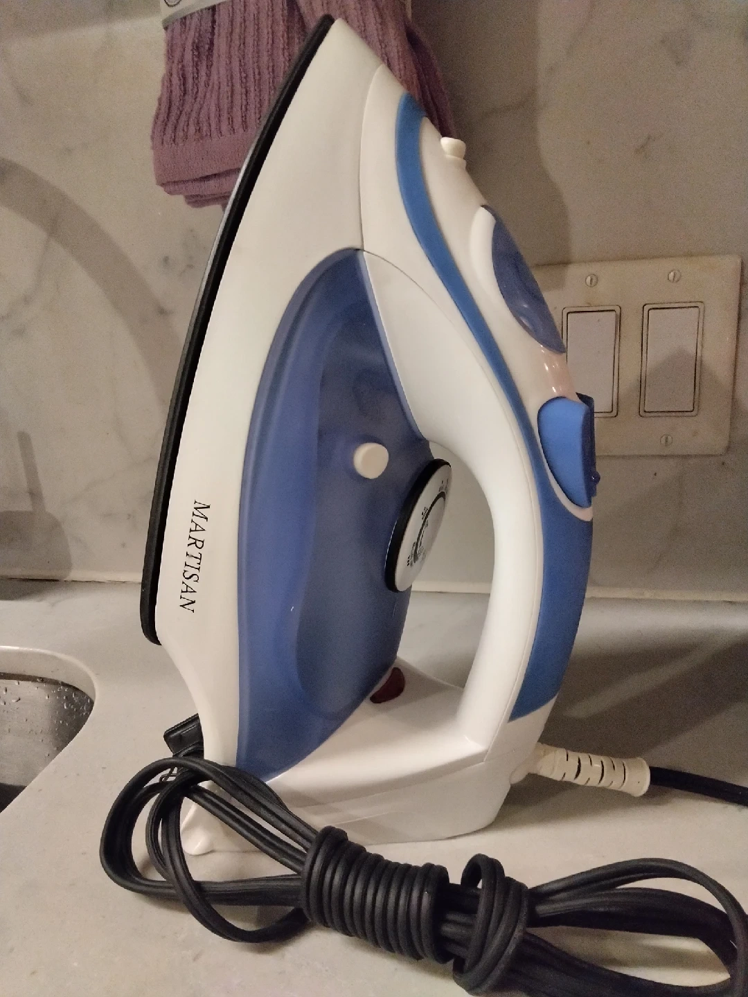 12I'm selling a Martisan steam iron in a nice blue and white color scheme. It's in good working condition and ready to help you get those wrinkles out! It features a temperature control dial and steam settings for different fabrics