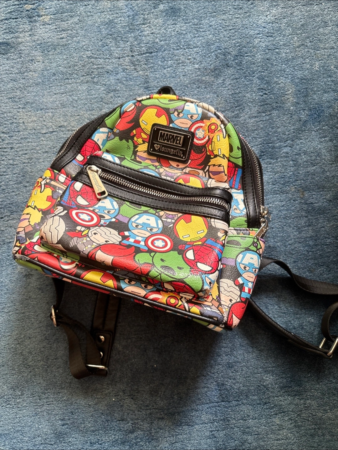 Selling a Marvel Loungefly mini backpack featuring the Avengers! It's in great condition and perfect for any Marvel fan. The backpack has a fun, colorful design with lots of your favorite characters. It's a great size for everyday use