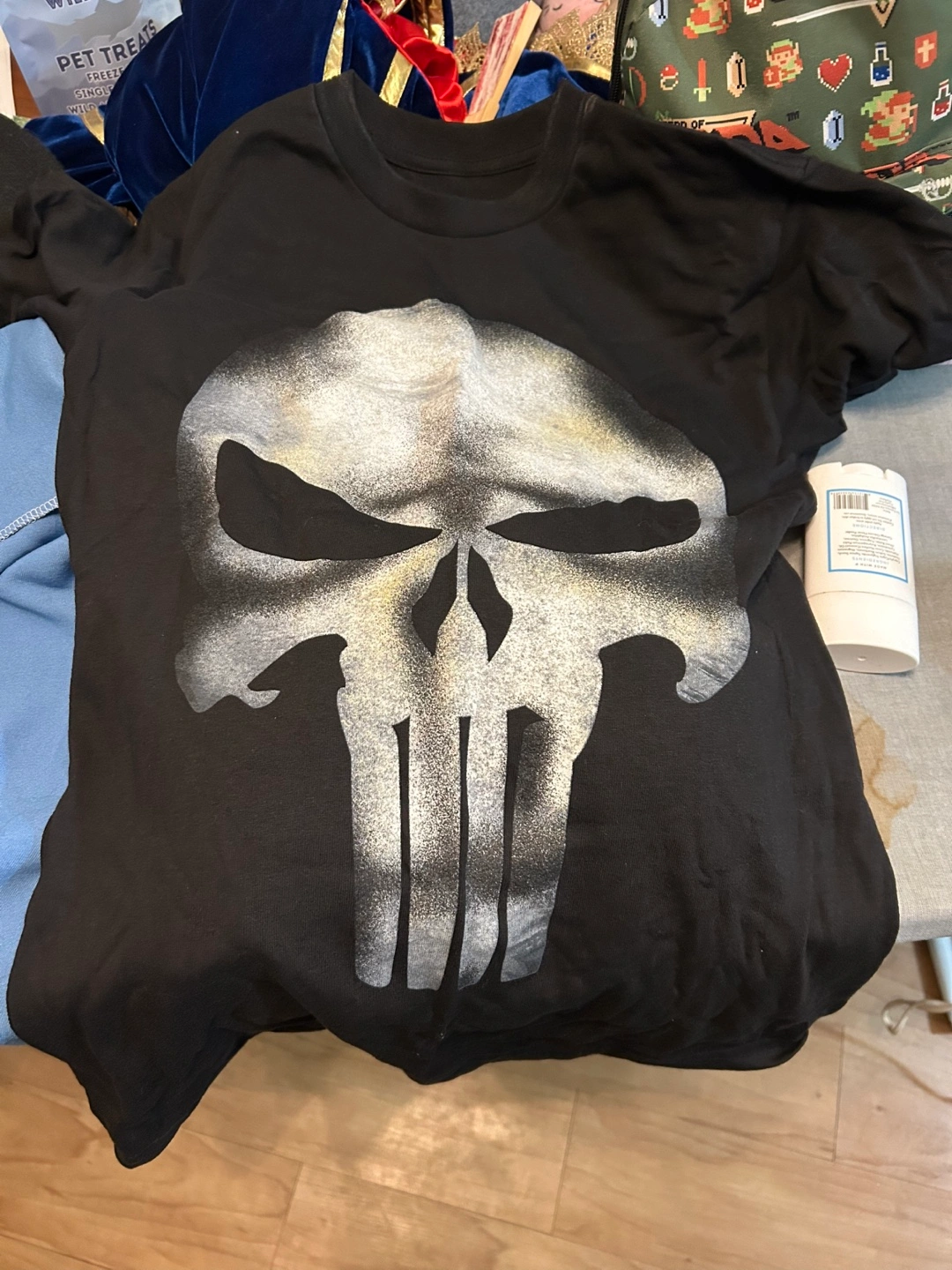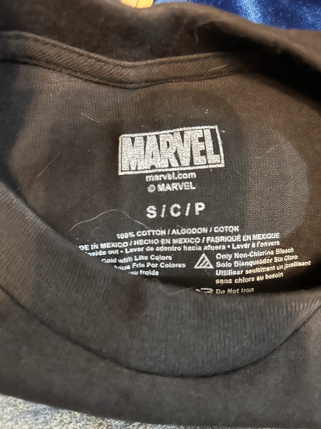 Selling a Marvel Punisher T-shirt in black. It's a size small and made of 100% cotton. Perfect for any Marvel fan!
