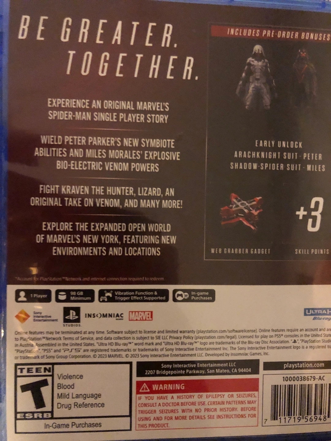 Selling Marvel's Spider-Man 2 Launch Edition for the PS5. Experience an original Spider-Man single-player story with Peter Parker's symbiote abilities and Miles Morales' explosive bio-electric venom powers. Fight Kraven the Hunter, Lizard, and more! Includes pre-order bonuses.