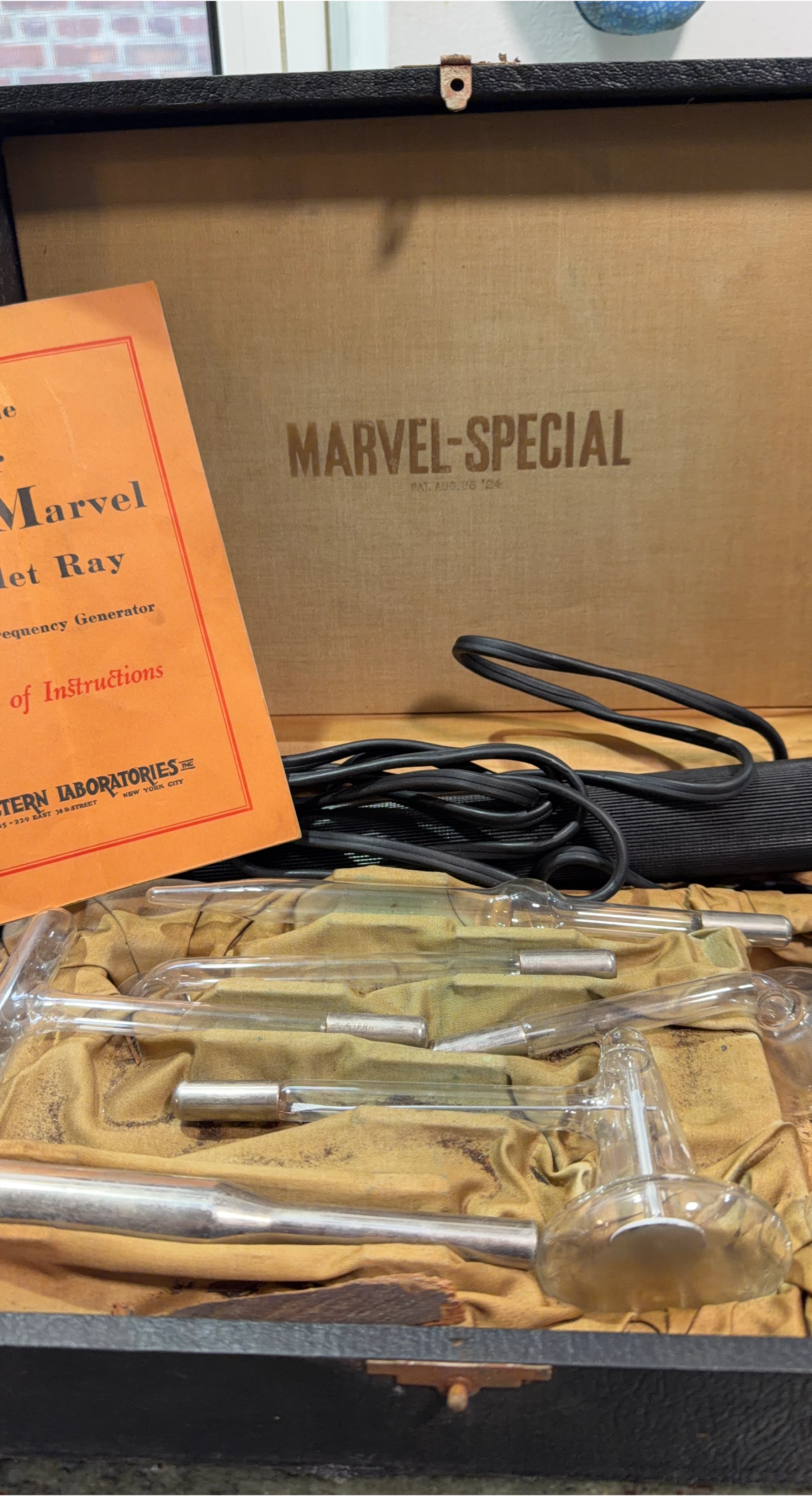 299Selling a Marvel Violet Ray high-frequency generator. It comes with the original box and book of instructions. Patented Aug 26 '24. A unique vintage item!