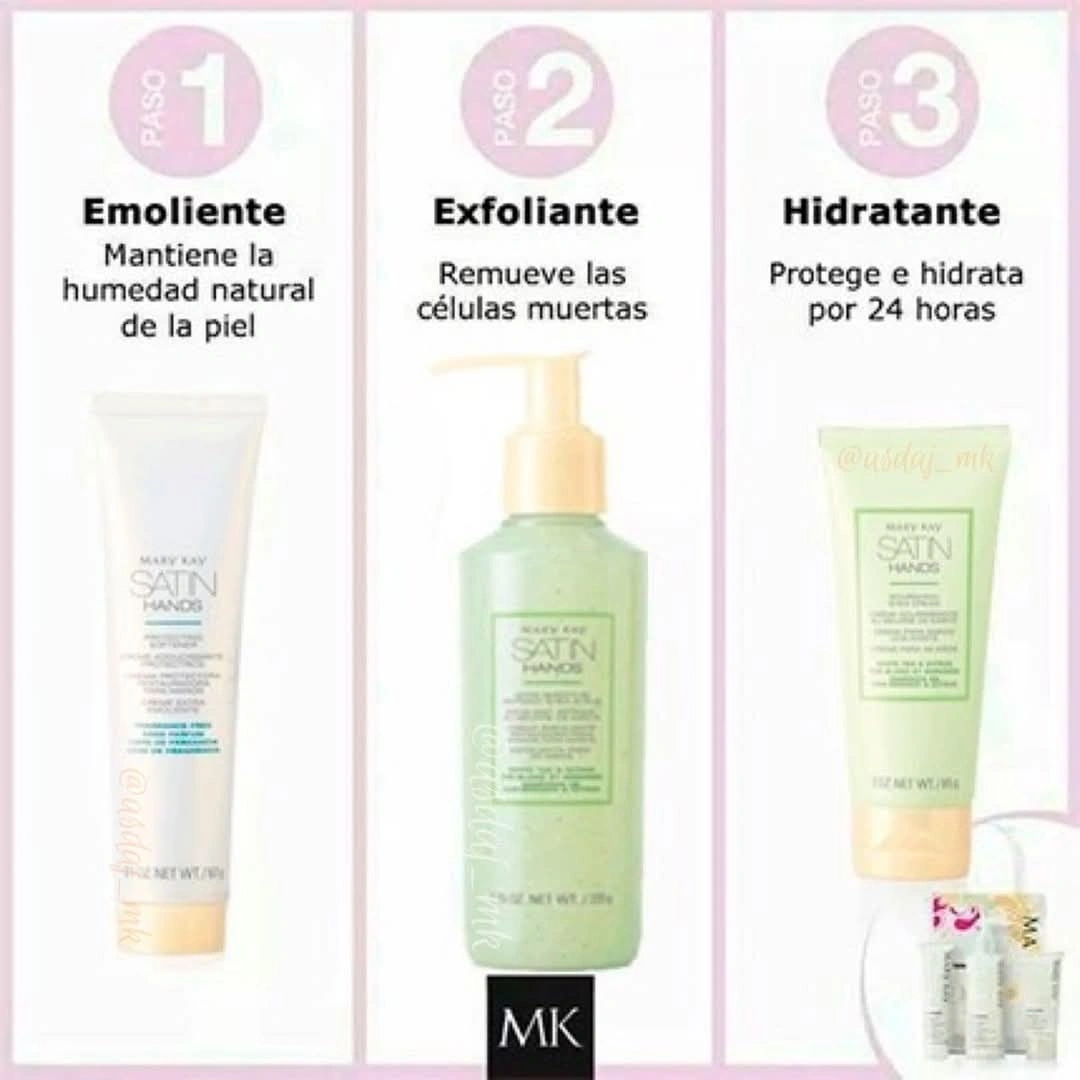 I'm selling a Mary Kay Satin Hands set. It includes: - Emollient to maintain natural skin moisture - Exfoliant to remove dead cells - Hydrating cream to protect and hydrate for 24 hours