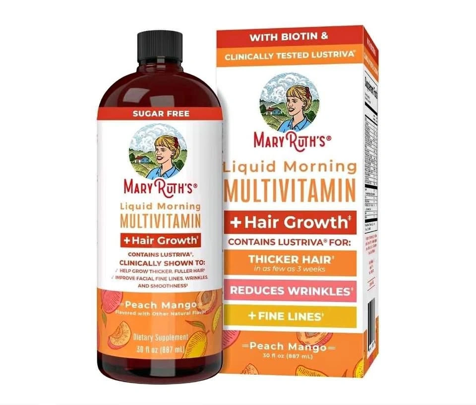 MaryRuth's Liquid Multivitamin + Hair Growth | Clinically Tested for Thicker Hair & Facial Wrinkles in Women | Biotin 10000mcg | Lustriva Hair Growth Supplements | Skin Care | 30 Fl Oz