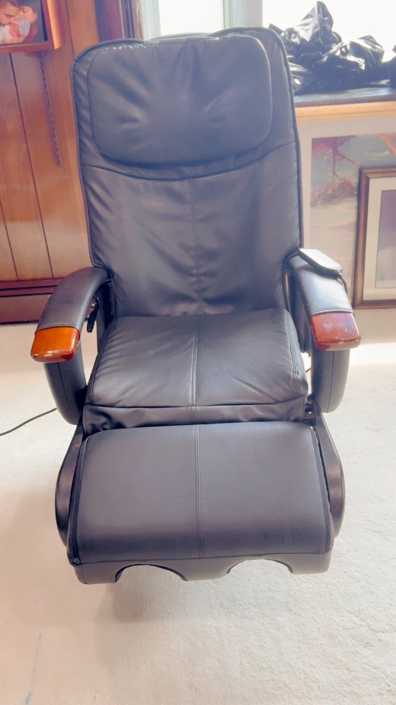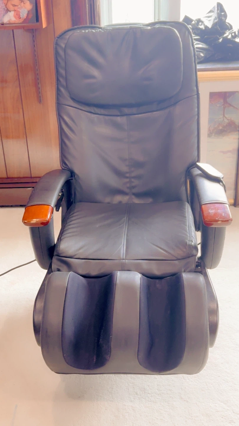 Get ready to unwind with this comfortable massage chair! It's perfect for relaxing after a long day. The chair features a built-in foot massager to help you relax from head to toe