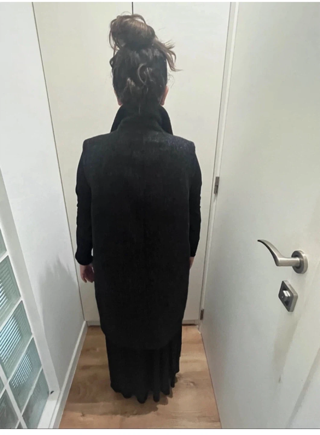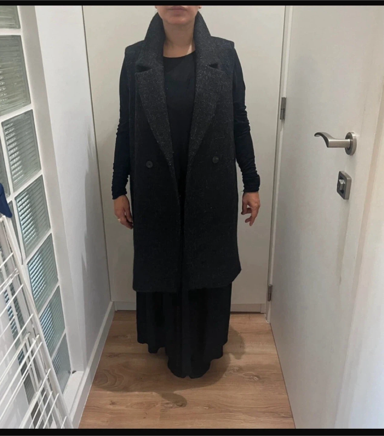 60Massimo Dutti grey wool coat M. Great condition. super cool coat, it can be worn with a leather jacket underneath. Fully lined. 34 inches - total length 20 inches - armpit to armpit Size M/ 38/10 > Condition Very good > Colour Black, Grey