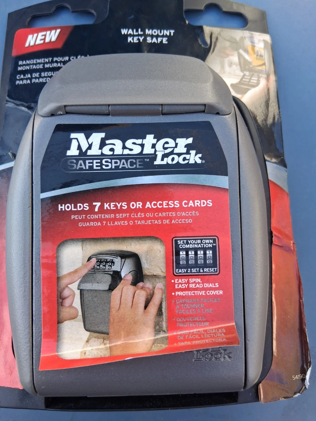 20I'm selling a new Master SafeSpace Lock. It can hold up to 7 keys or access cards. It has an easy spin and easy read dials, and a protective cover. It also has an easy 2 set & reset combination