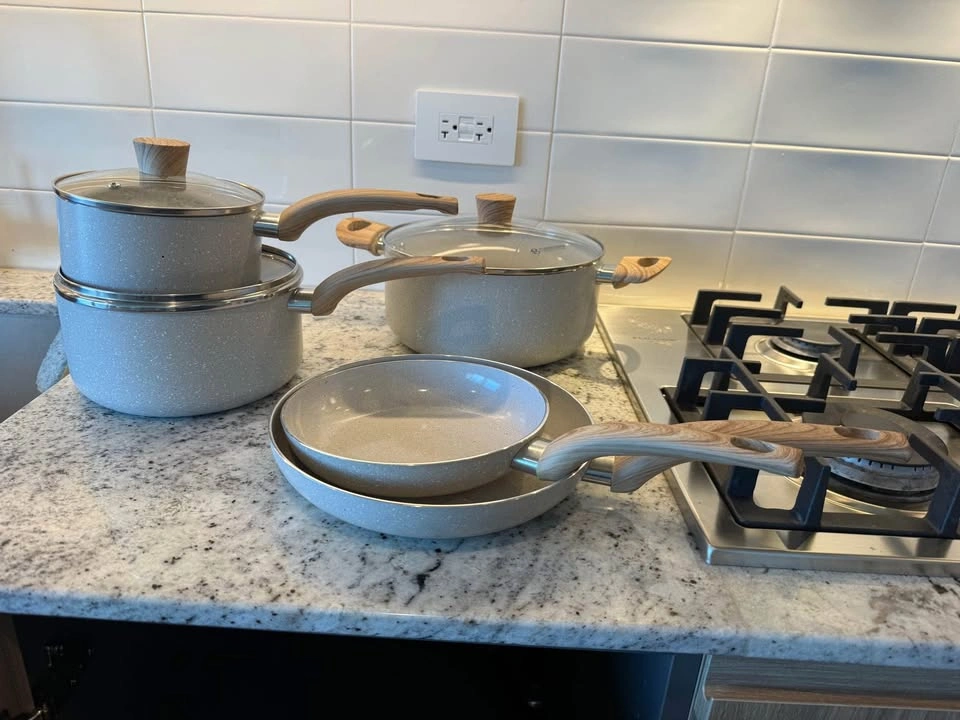 2/5 are completely new. The other 3 I’ve used but they literally still look like new. - non stick