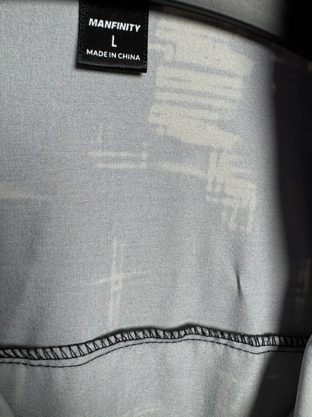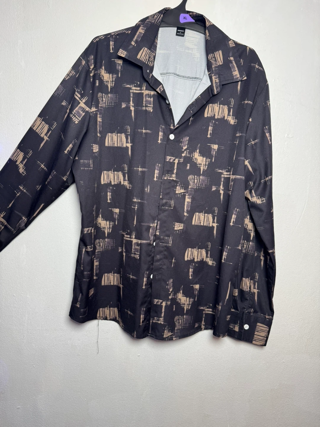 Manfinity button-up shirt with a unique abstract print. Long sleeves and a collared neckline. Size large.