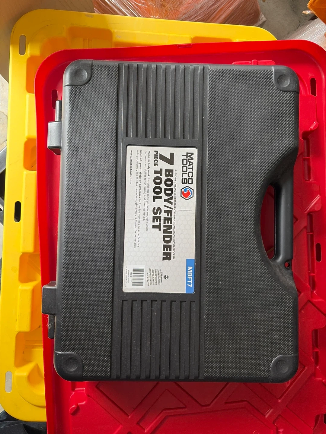 10Selling a Matco Tools 7-piece body and fender tool set! It comes in a black case and includes various tools with red handles and silver heads. Great for auto body work and repairs