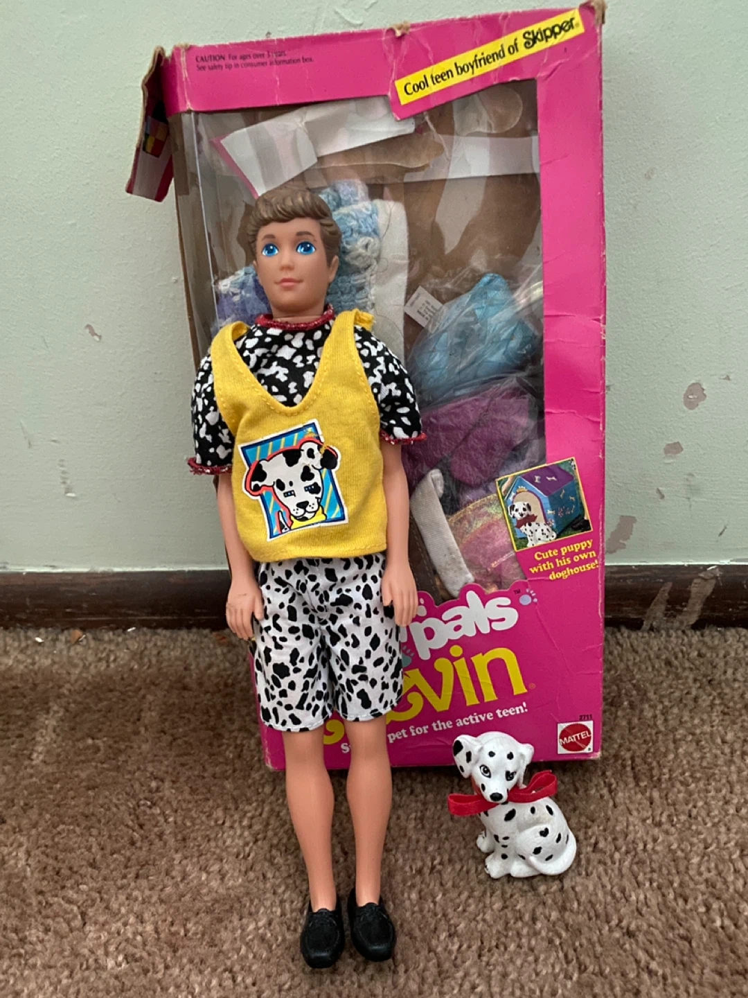 Selling a Mattel Kevin doll with his Dalmatian pal! He's the cool teen boyfriend of Skipper. Comes with his original box and a cute puppy with his own doghouse!