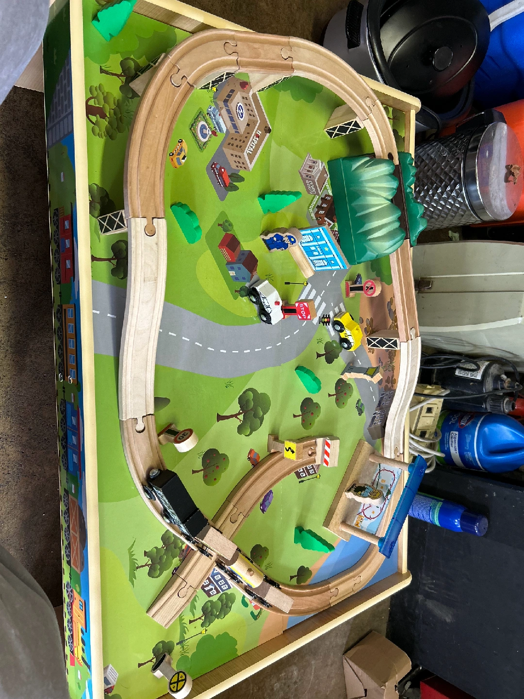 Selling a Maxim 50-Piece Train Set with Play Table. It's a fun and engaging toy for kids. Originally bought for $79.99