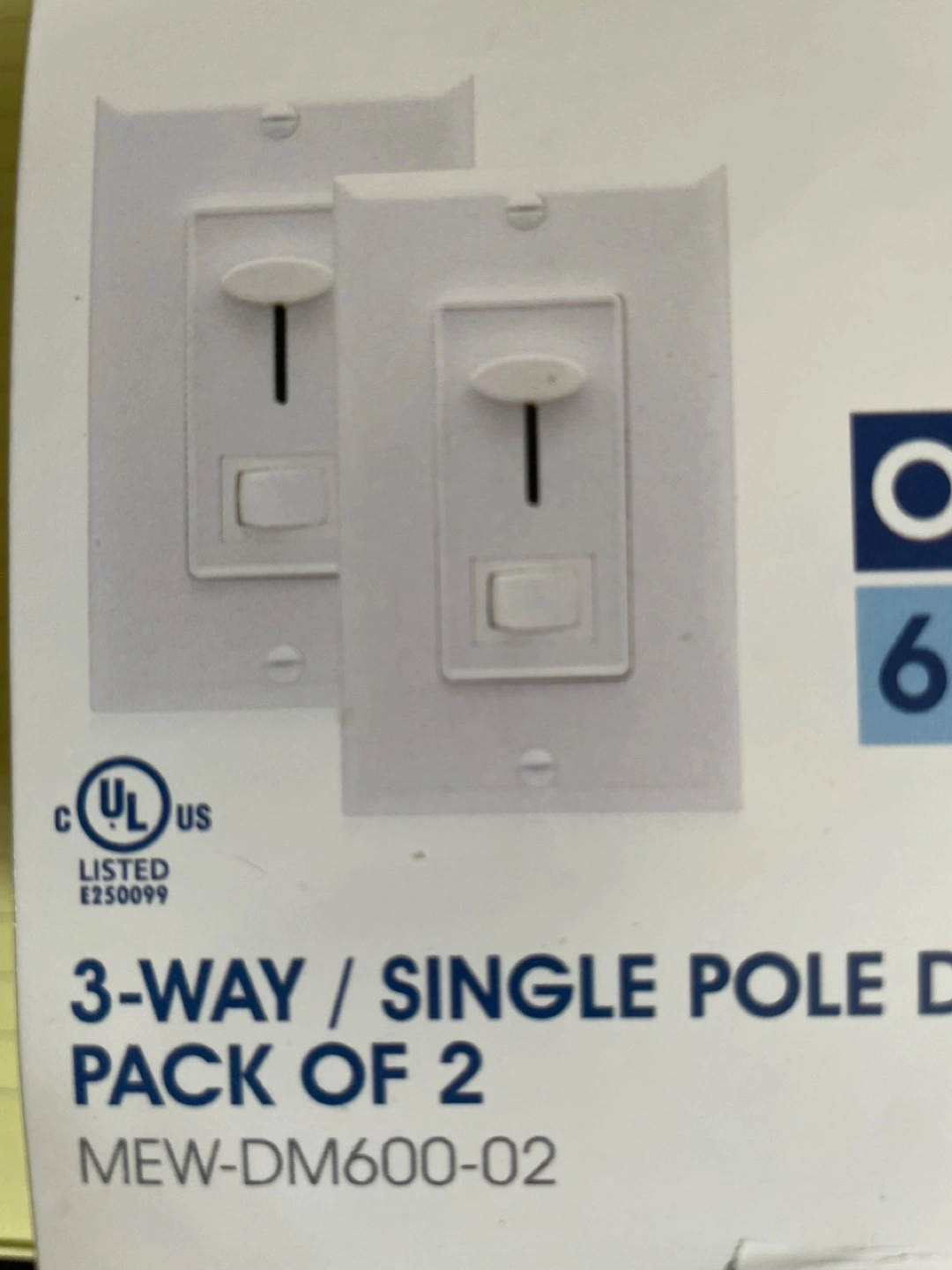 753 way single pole dimmer light switch 600 watt max. Pack of 2