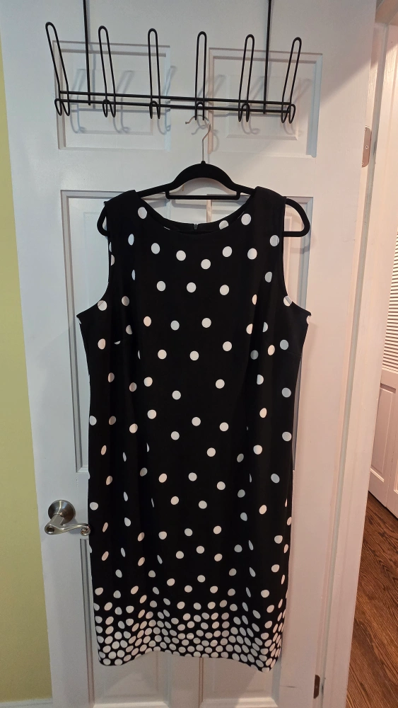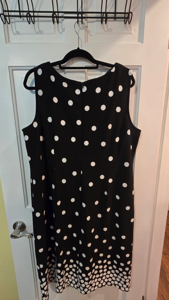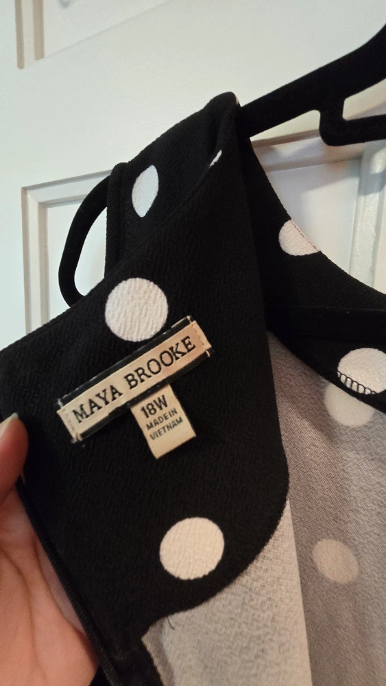 5Selling a Maya Brooke dress in size 18W! It's a black dress with a white polka dot pattern. The dress is in great condition and ready for a new home dress is below the knee worn once.