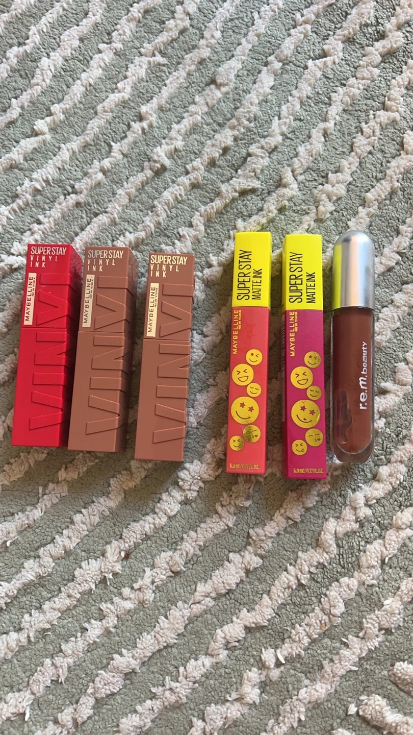 Selling a collection of lipsticks from Maybelline and r.e.m. beauty! The Maybelline Super Stay Vinyl Ink lipsticks offer a long-lasting, glossy finish, while the Super Stay Matte Ink provides a comfortable matte look. There's also a r.e.m. beauty lipstick. All brand new unused! $5 each $3 if you take multiple.