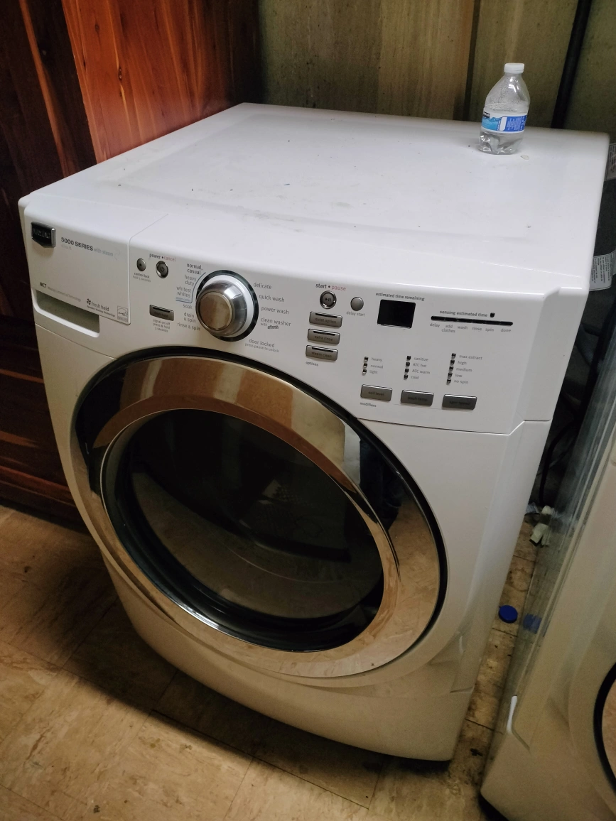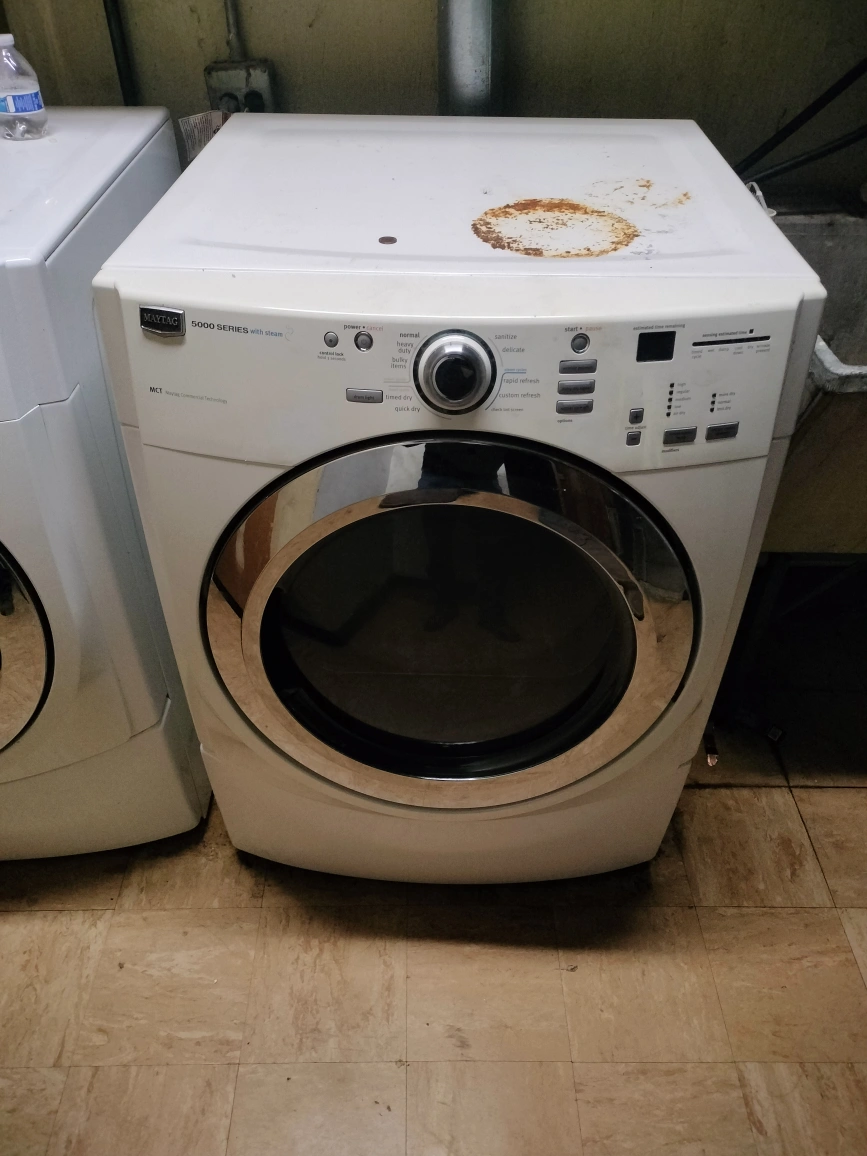 A set of Fairly new front load Maytag washer and dryer from their 5000 series. both are in good condition and pretty clean. I don't have dimensions, but am going to remove the rust circle on top of the washer before transaction is completed. $380. or best offer, price is very negotiable. located in Glencoe IL. buyer must move and transport both!