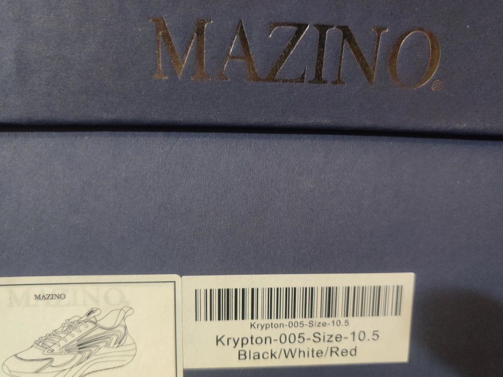 60Selling a pair of Mazino Krypton-005 sneakers in size 10.5! The colorway is black, white, and red. They come with the original box