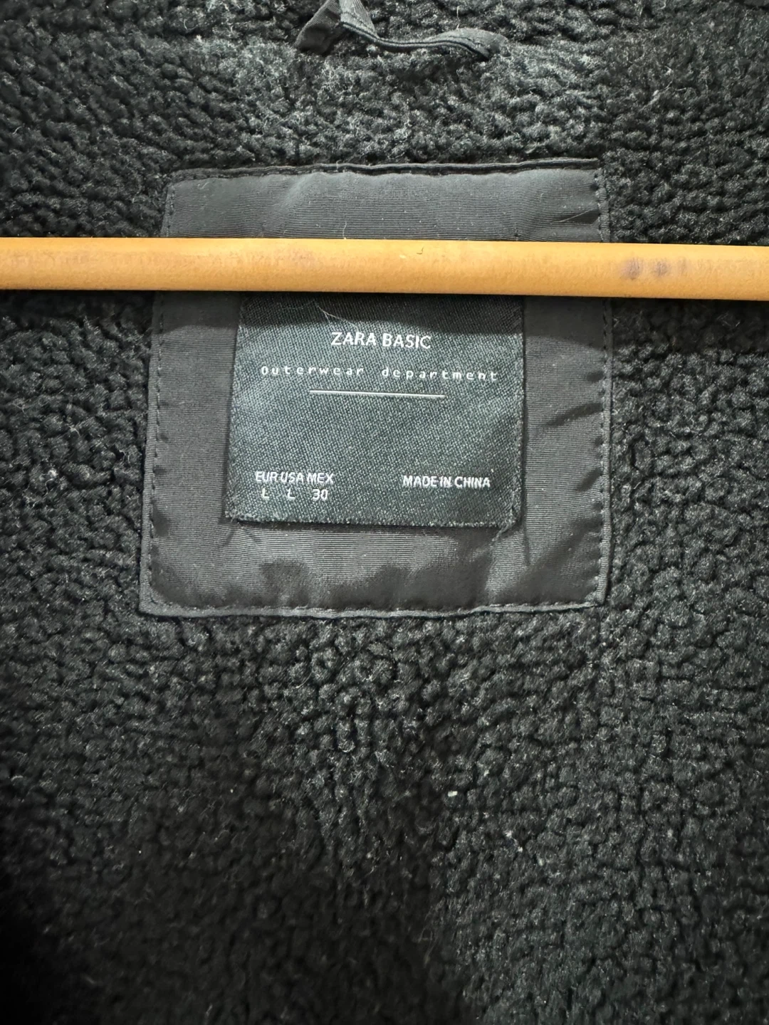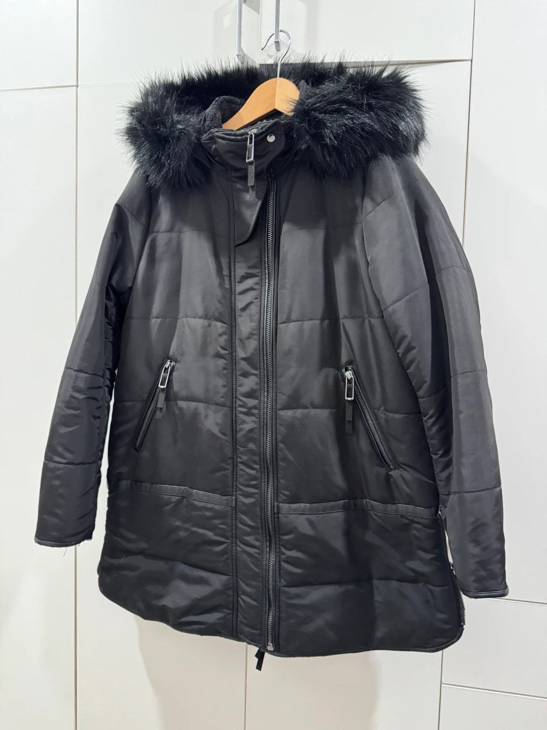 Selling a Zara Basic black winter coat. It's a size L and has a faux fur hood with sherpa lining . It's in great condition and perfect for the cold weather