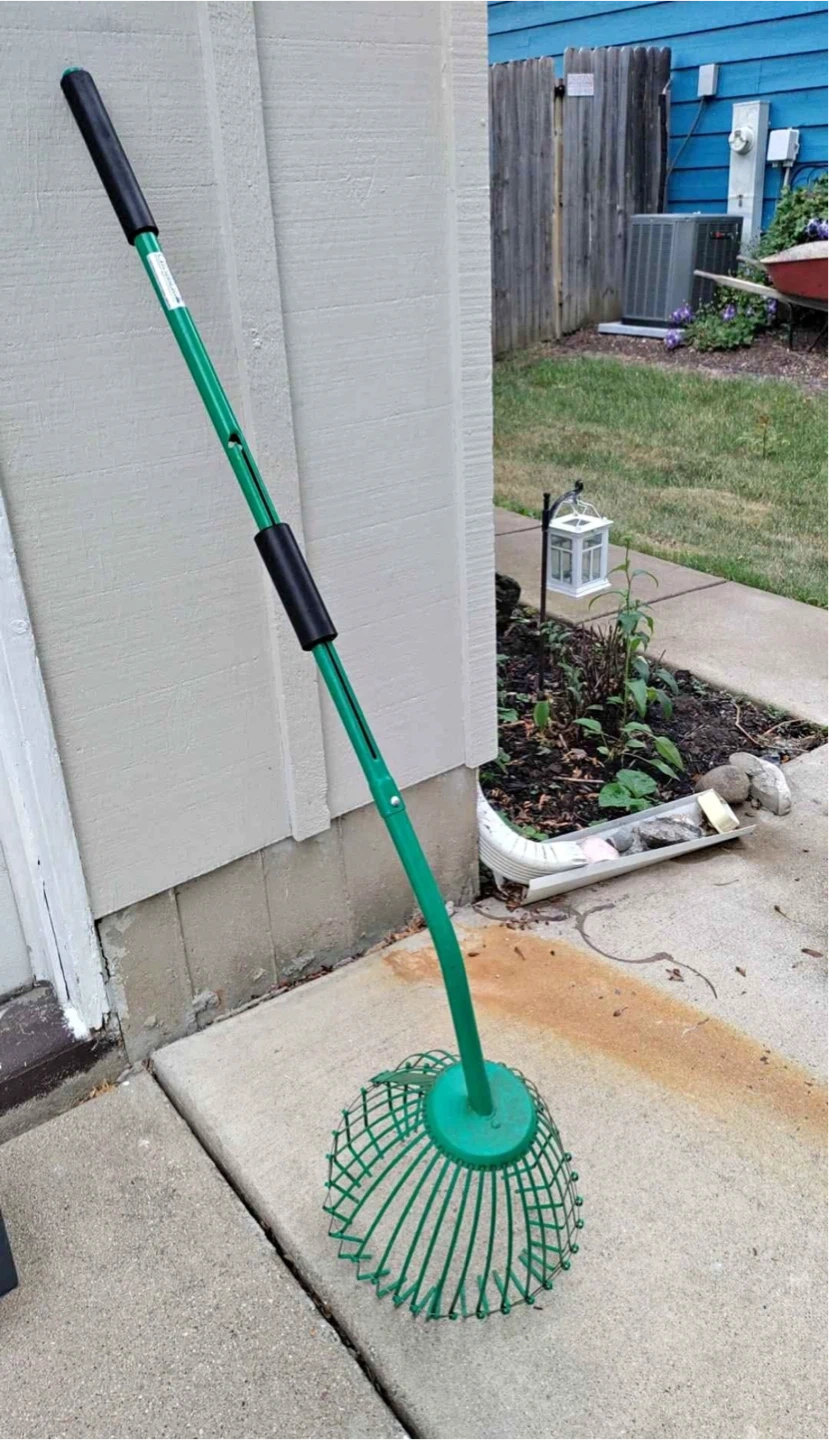 This Garden Grabber apple fruit picker tool is designed for easy collection of fallen fruit and debris. It features a long handle for extended reach. This tool is useful for any gardener looking to efficiently clear their yard.