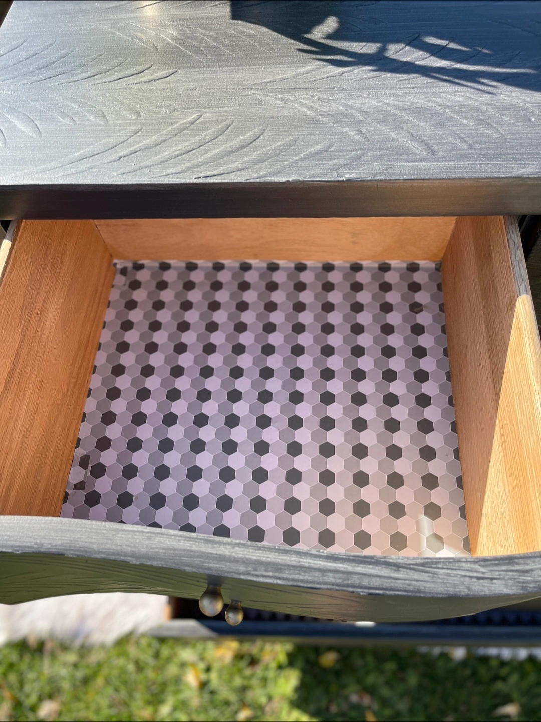 114Beautiful 5 drawers dresser redone in modern gray brushed finish. Very versatile piece. Featuring 2 layers of primer, 2 layers of paint, and 3 layers of polycrylic for extra protection and durability. Raised stencil added Dovetail drawers. All the drawers are working very good and are lined with new contact paper, extremely clean. Solid wood. Paired up with the original hardware. Deep drawers, lots of storage. Can fit in almost any decor or any room. ***(FREE) Delivery within close proximity**** W36/D19//H44