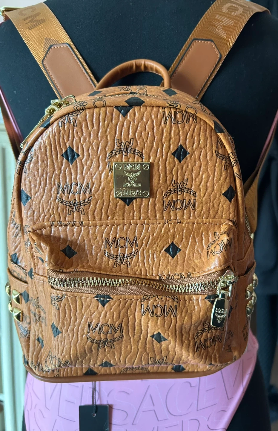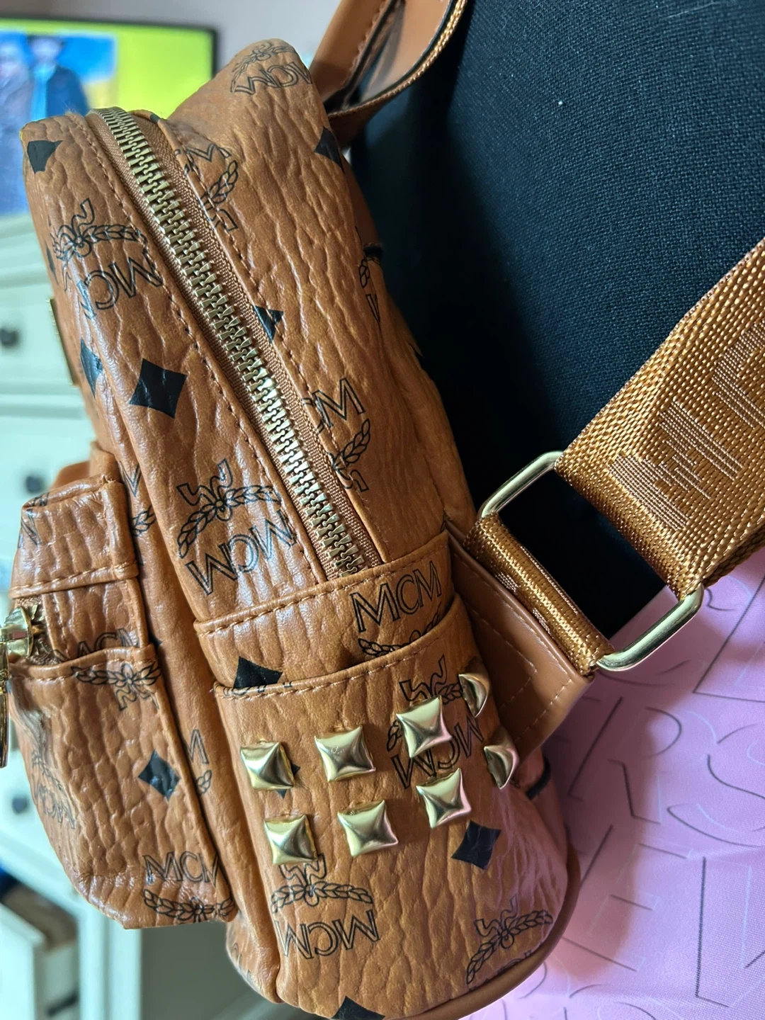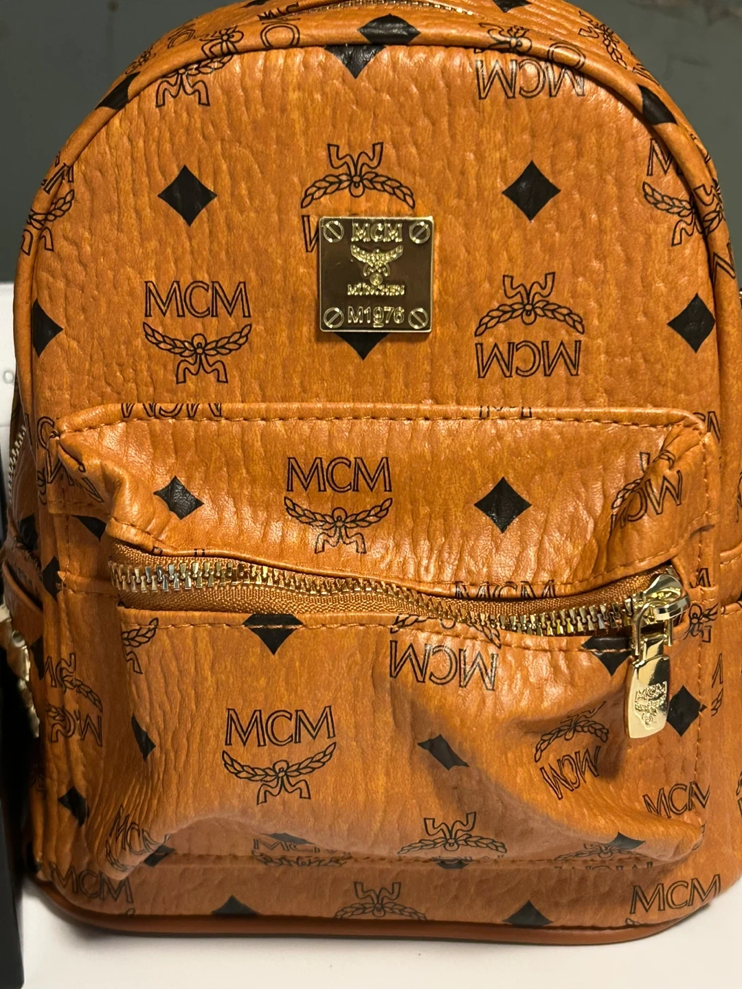 This is a cute mini backpack in a brown color. It features the classic MCM logo pattern and gold-tone hardware. Perfect for carrying your essentials in style! ***Classic inspired design ***