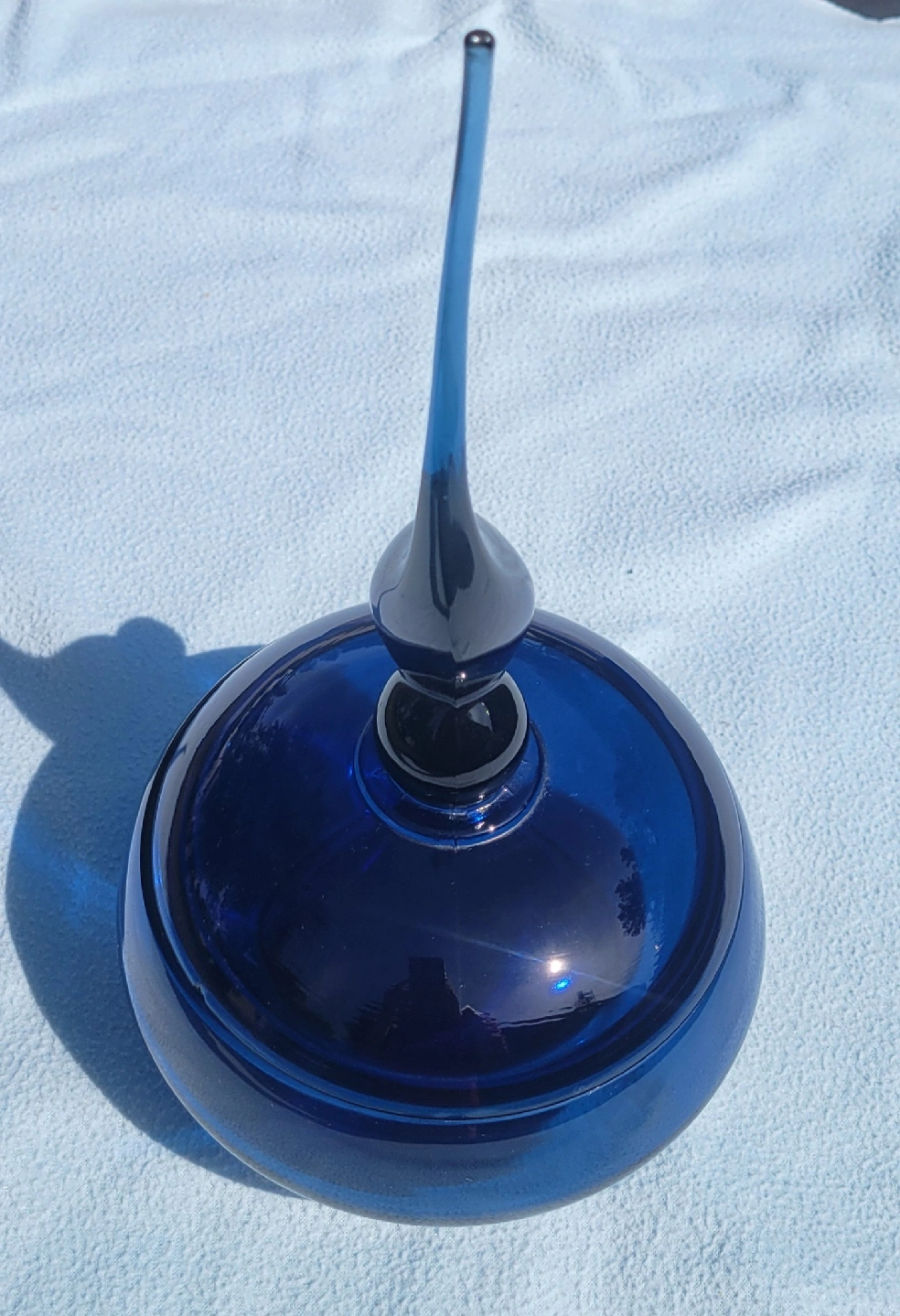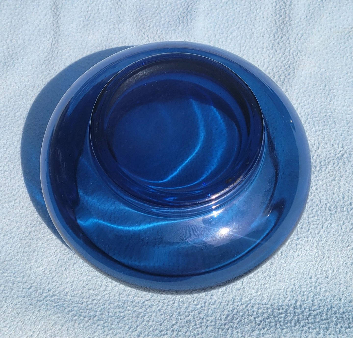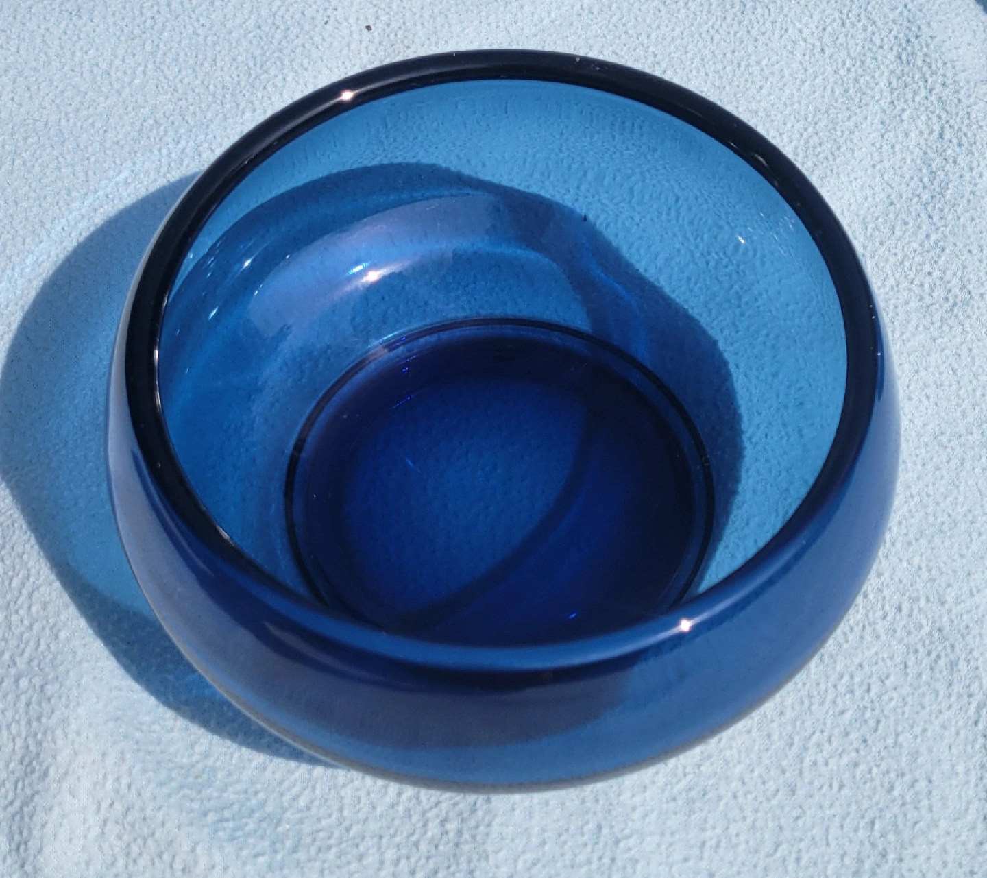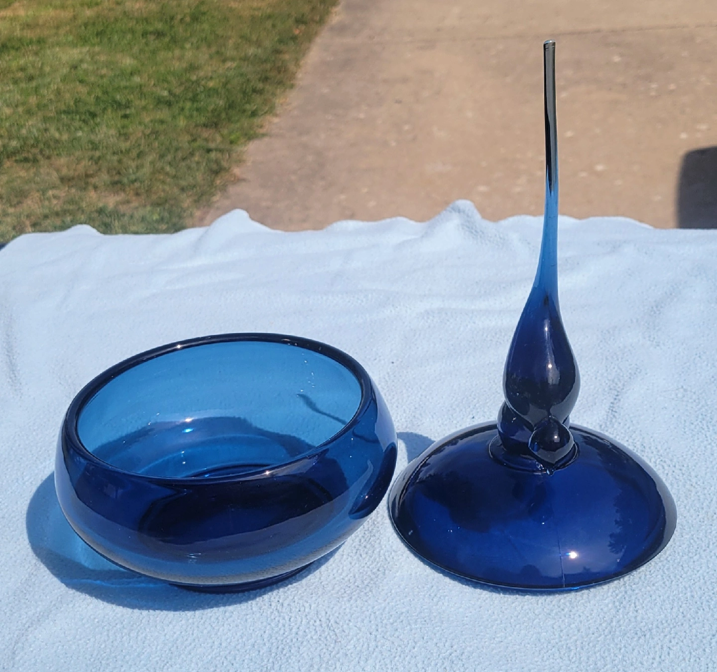 Here's a beautiful blue glass trinket dish featuring a bird design! It's perfect for storing small items or simply as a decorative piece.
