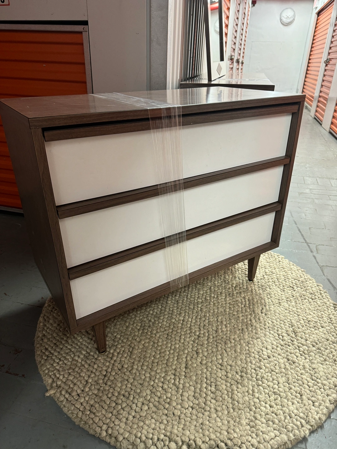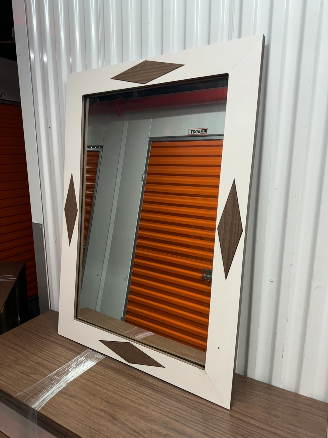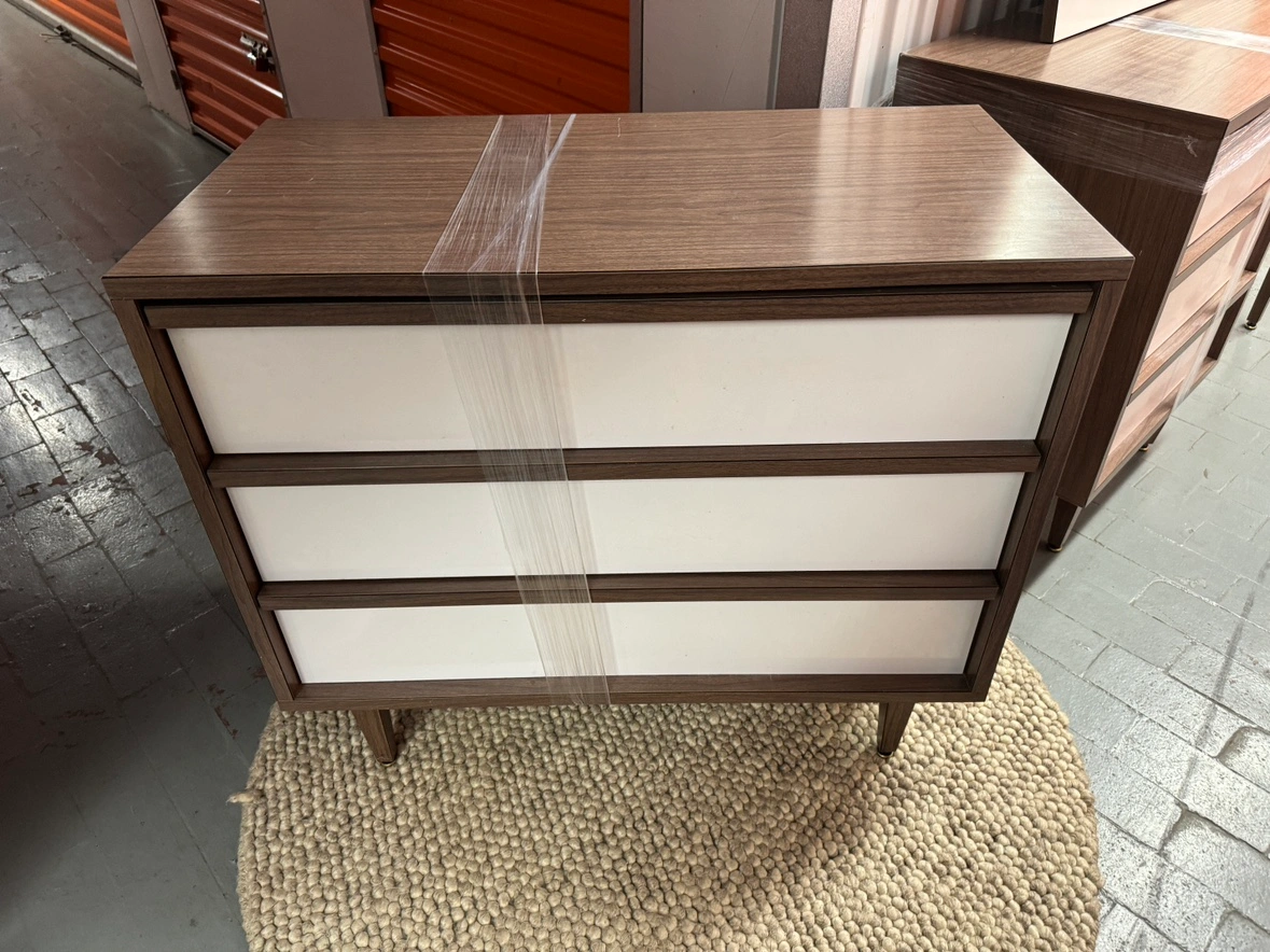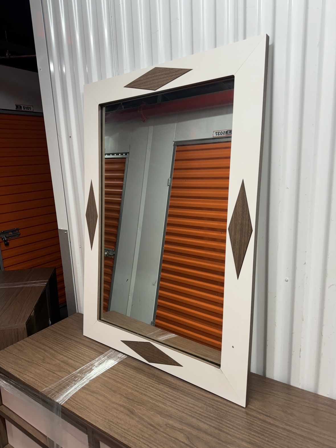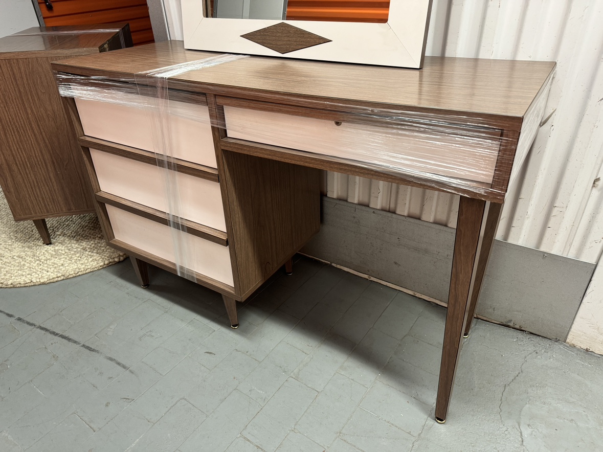 15Mirror - 30” W x 42” H Dresser - 36” w x 18” d x 31” h Desk - 48” w x 18” d x 31” h 28” seat height Really cute true vintage mcm set, just doesn’t work in my new apartment. Has some wear and tear that’s accurate to its age but still very functional!