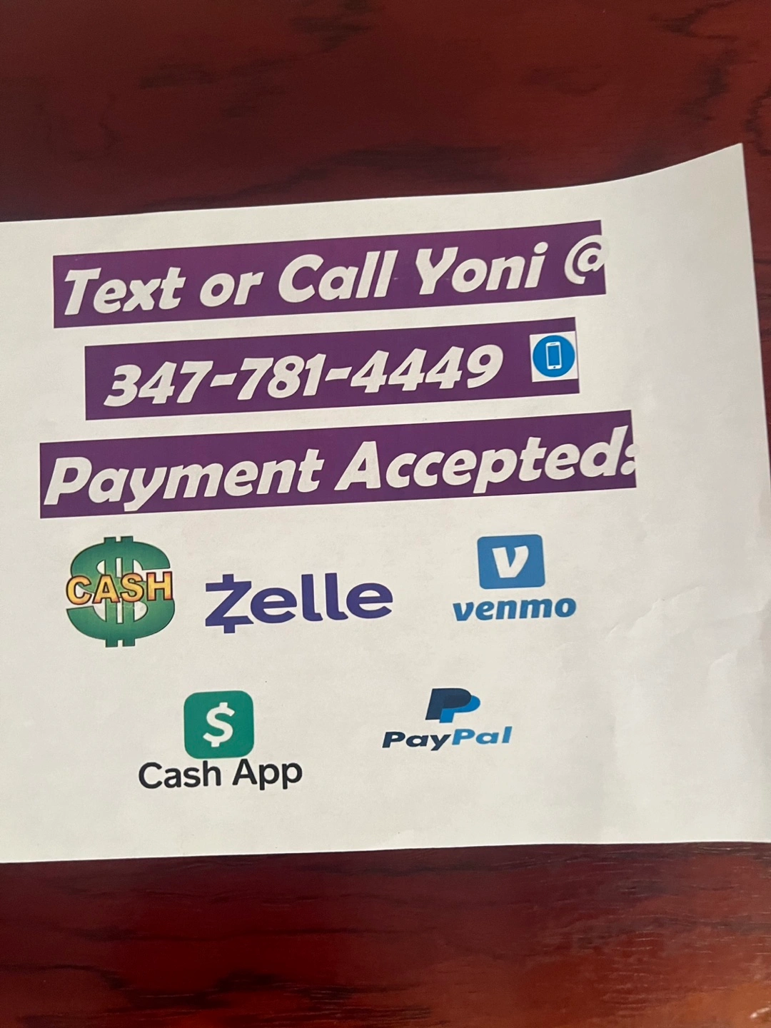 Cash, Venmo, Zelle, or CashApp can be used for payment.