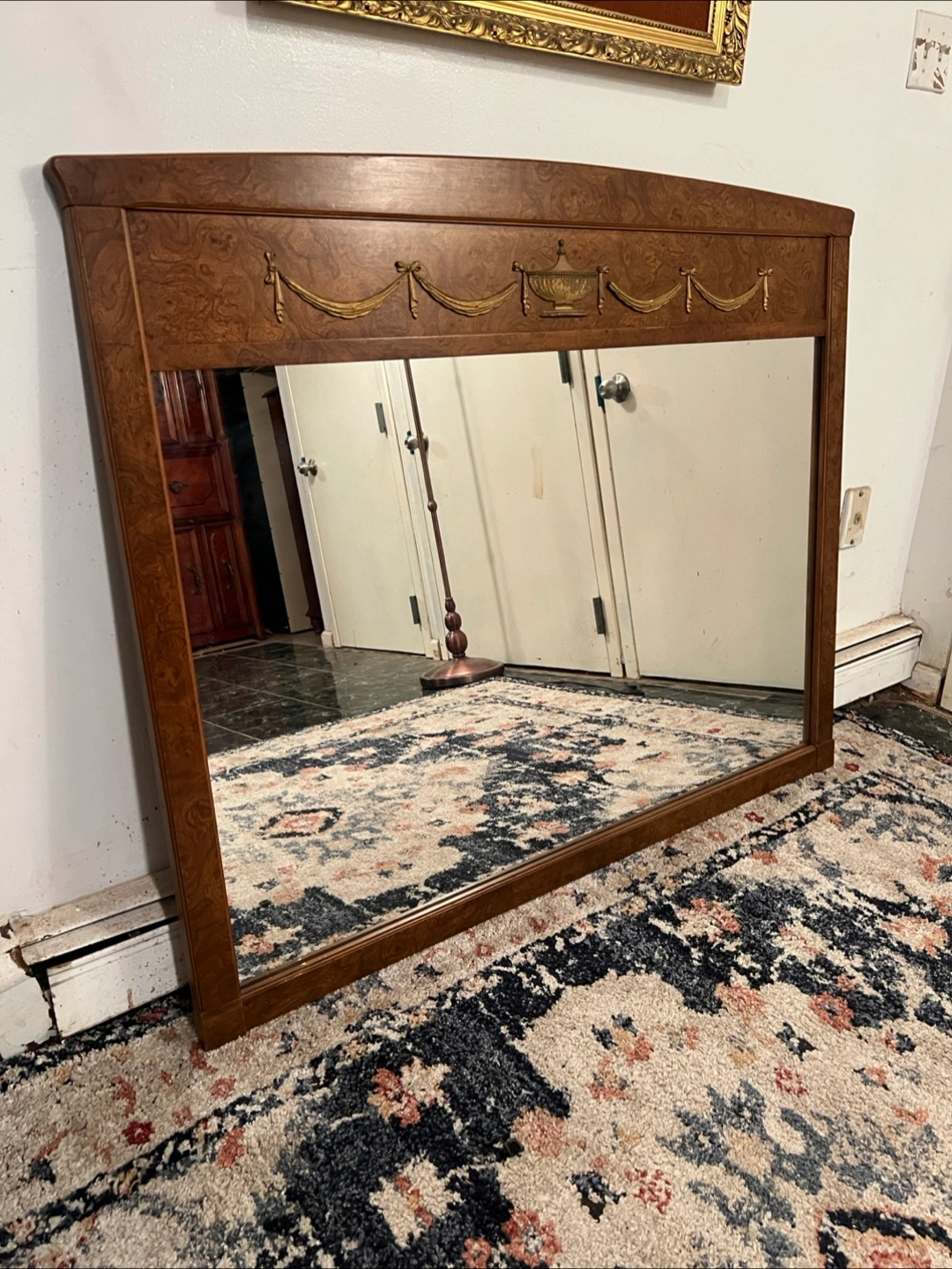 Selling an extra-large vintage mirror made with a wood frame. No broken parts and functional. May have minimal wear.