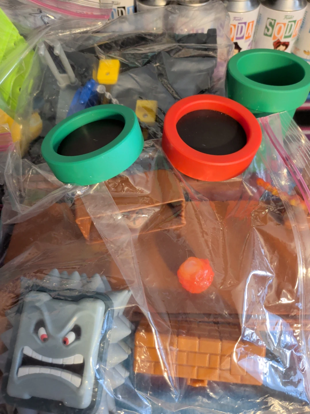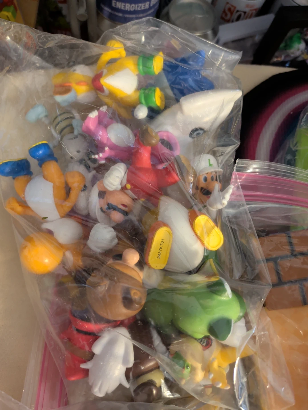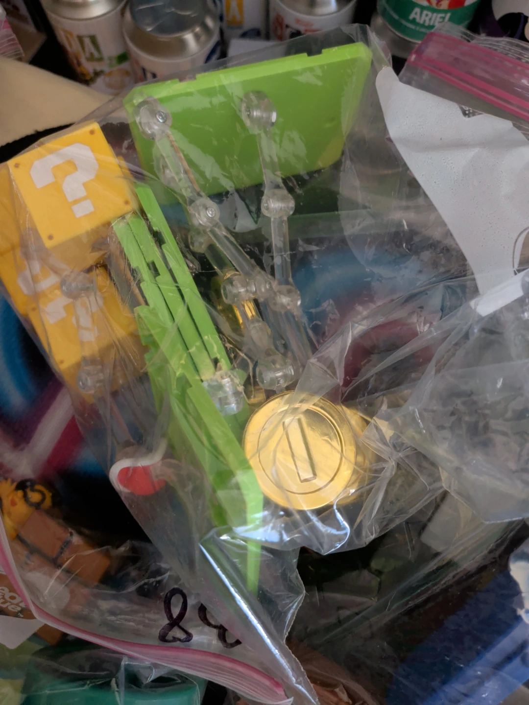 This is a collection of Nintendo Mario Kart themed building blocks and collectible figures. It includes various characters and accessories for imaginative play. Pieces include brick blocks, question mark blocks, and character figures. Used, in good condition. You can connect the sets together. Great display piece.