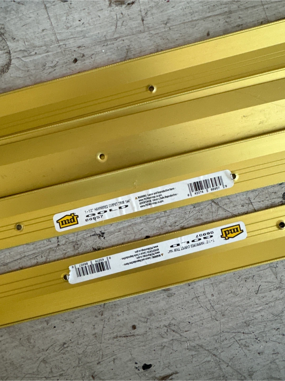 Selling md 1-1/2" Hammered Carpet Trim in gold color. Great for finishing carpet edges!