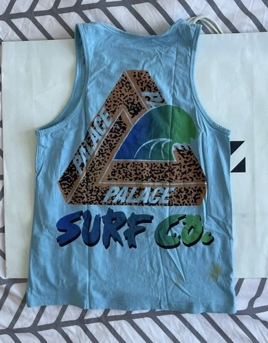 This is a 100% authentic Palace Surf Co Cheetah Tri Ferg Sleeveless Tank Top in Blue, size M. It features a unique cheetah character design and has a regular fit. The blue color makes it a stylish choice for casual wear.