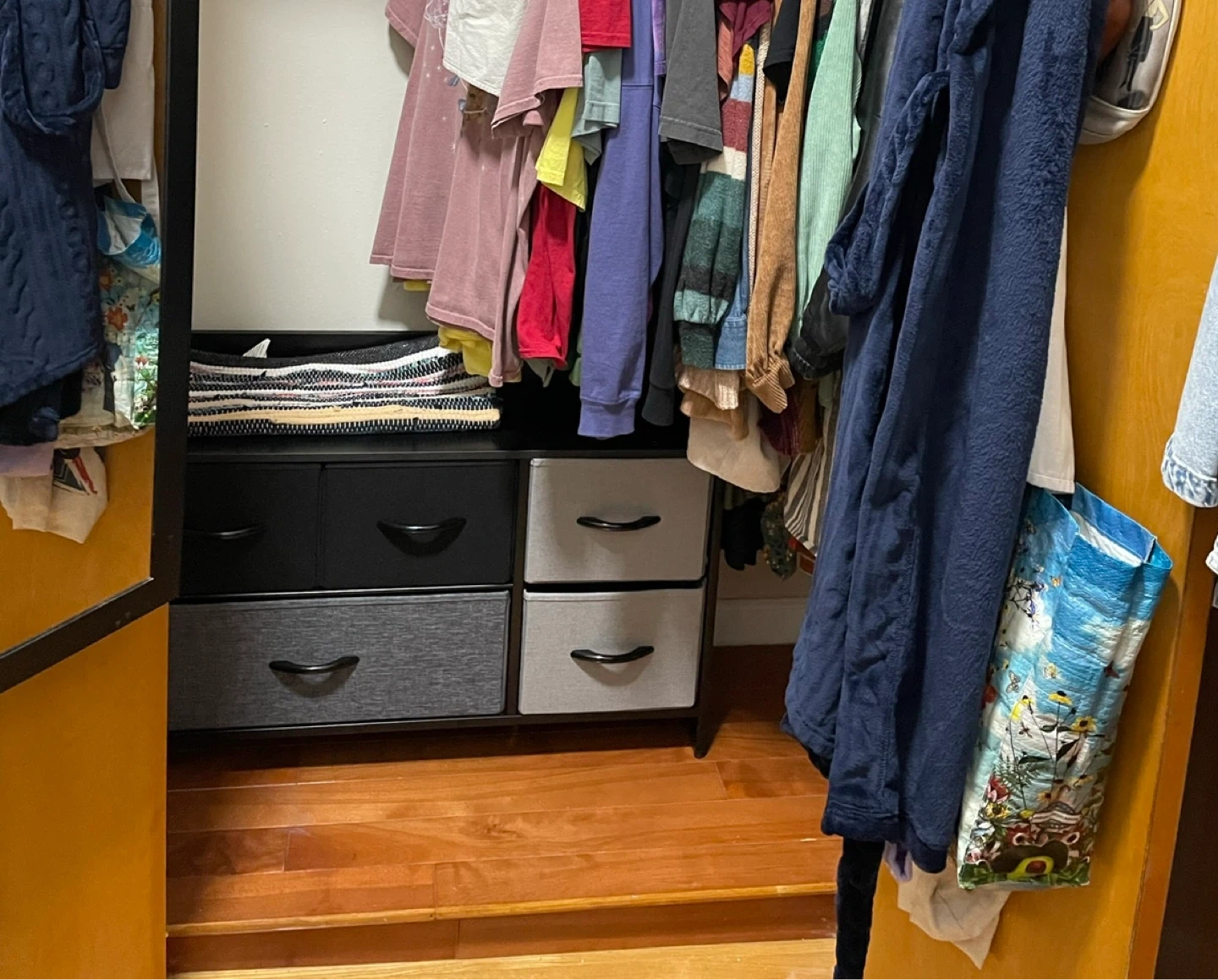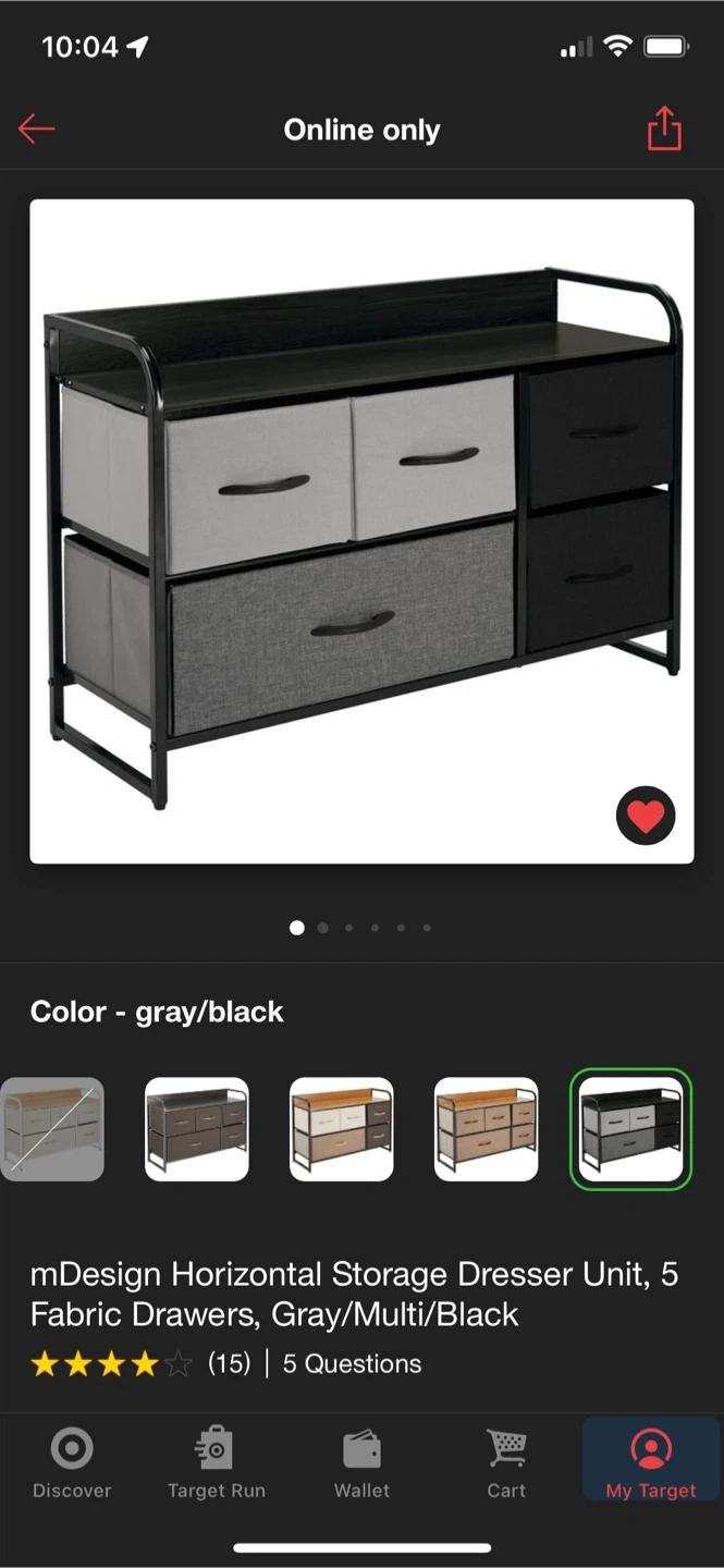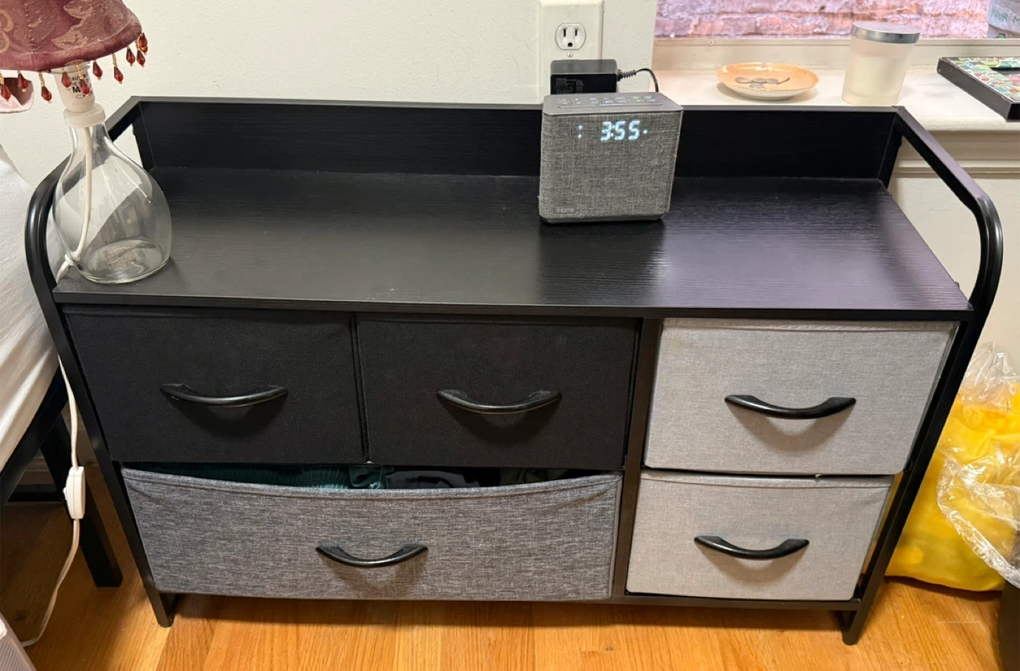 143Selling a gray and black mDesign horizontal storage dresser unit with 5 fabric drawers. It's in great shape and ready for a new home! Perfect for organizing clothes or other items in your closet or bedroom. Served awesome as a nightstand as well!