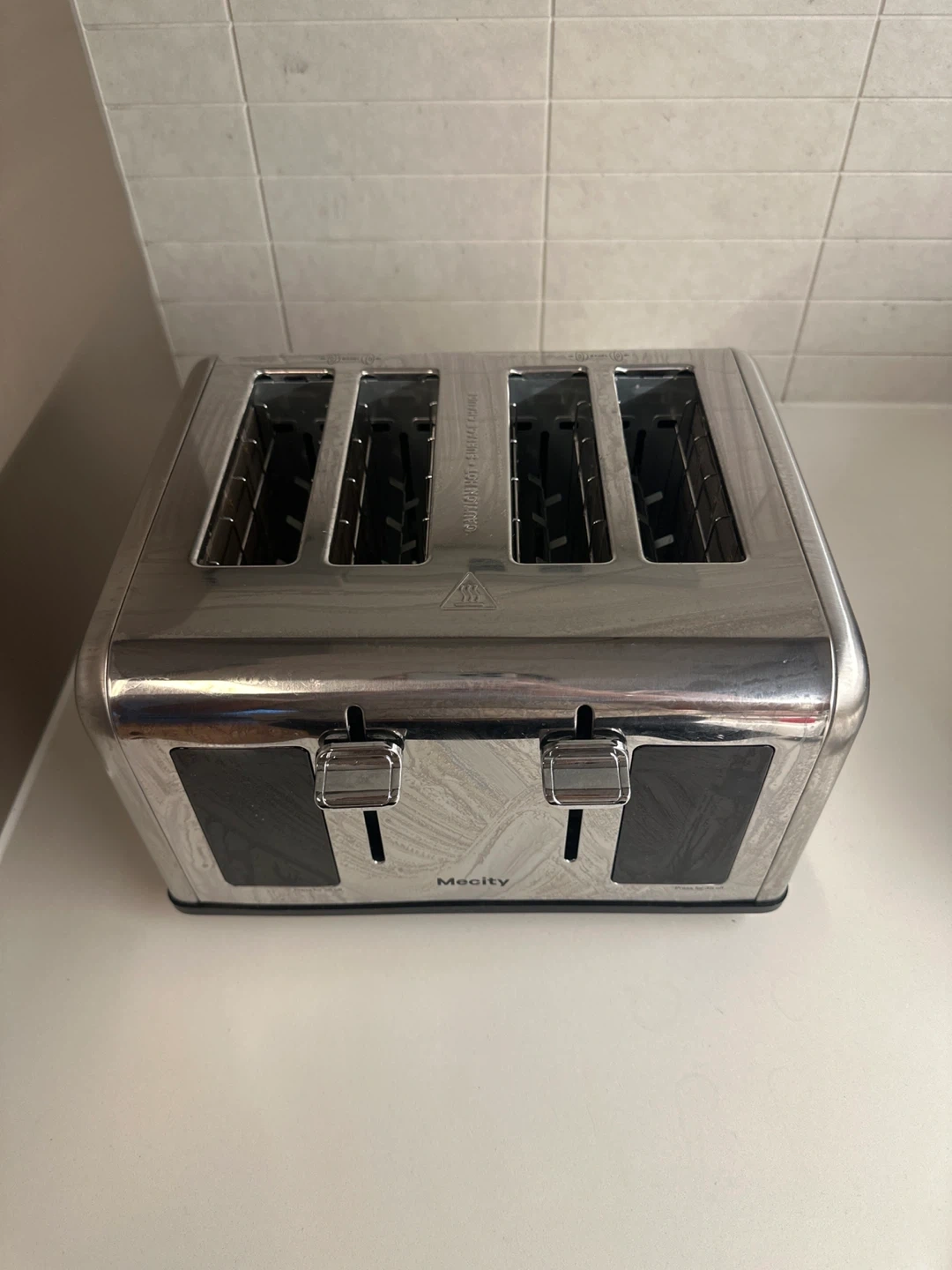Selling a Mecity 4-slice toaster. It's in great condition and ready to help you make the perfect toast. Only used a handful of times so it’s fairly new. Moving sale. Pick up please. Thank You!