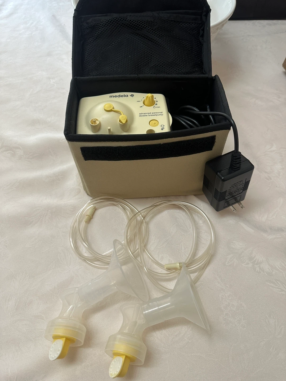 Selling a Medela Advanced Personal Double Breast Pump! It comes with all the components you see in the picture, including the pump, power adapter, tubing, flanges, and carrying case