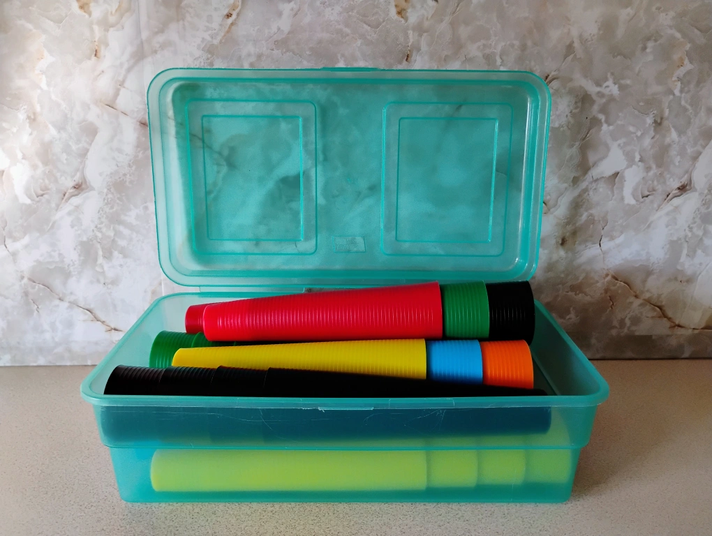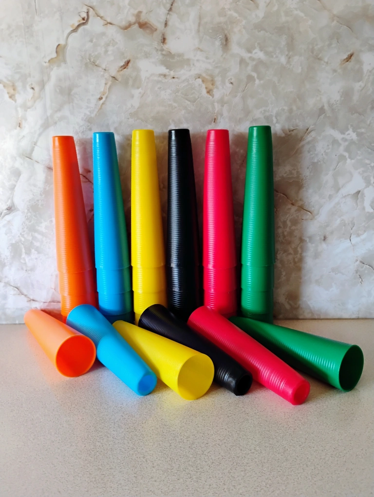 Set of 30, multi-colored, lightweight, textured cones with non-slip grip. Ideal for use in hand therapy, rehabilitation after stroke, and recovery after surgery or injury Top: 1" Diameter Base: 2" Diameter Height: 7" Like new condition. Clean and sanitized. No cracks, dents or chips. Washable and latex free plastic. Non-smoking and pet free home. Storage case included. CASH ONLY at time of pick-up in Gilberts, IL. No other form of payment accepted. No delivery or shipping available.