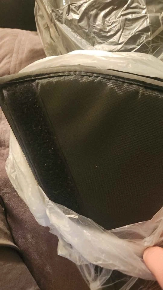 Never used, nylon and velcro, edge is reflective. Fits medium size dog.