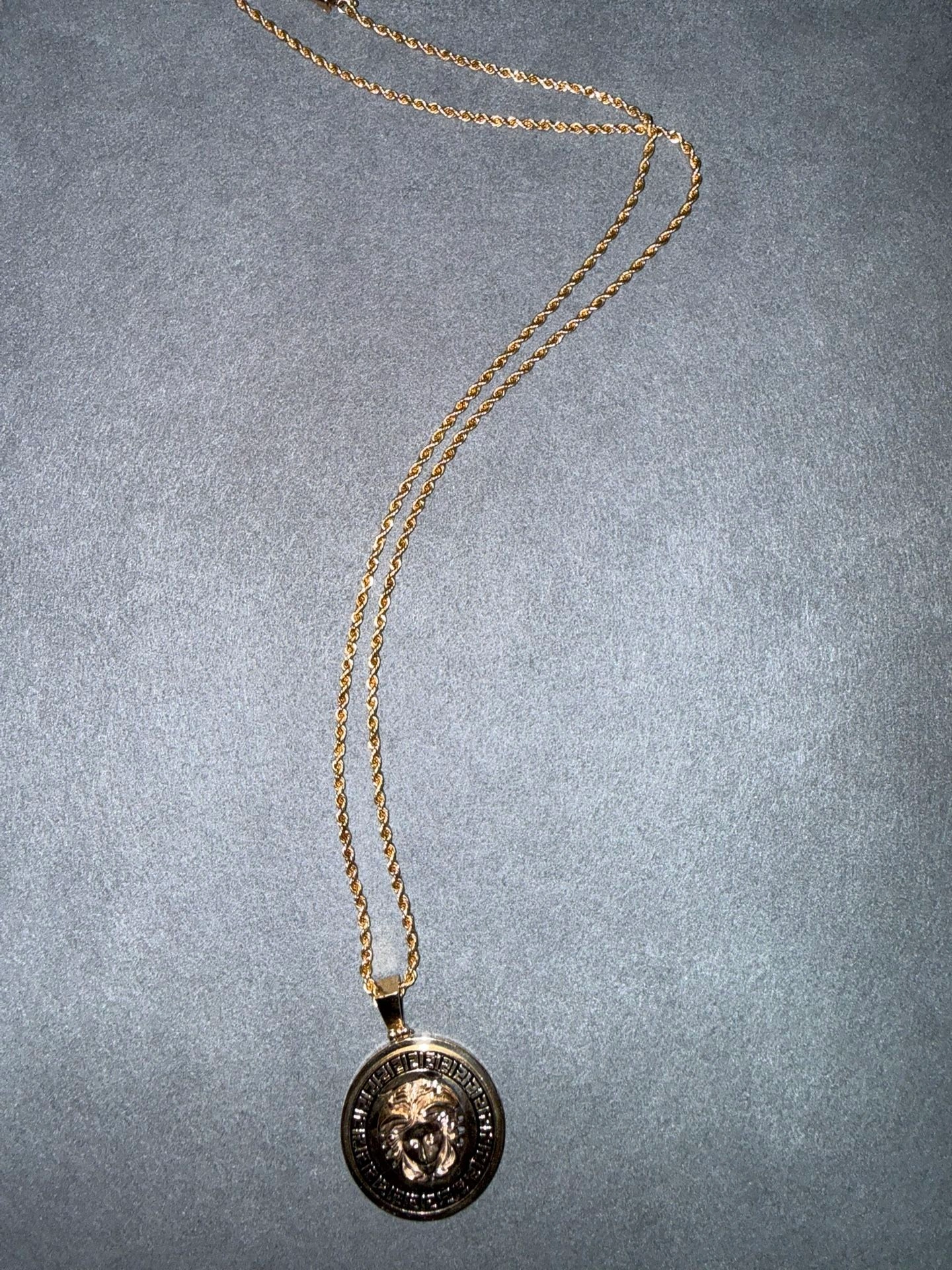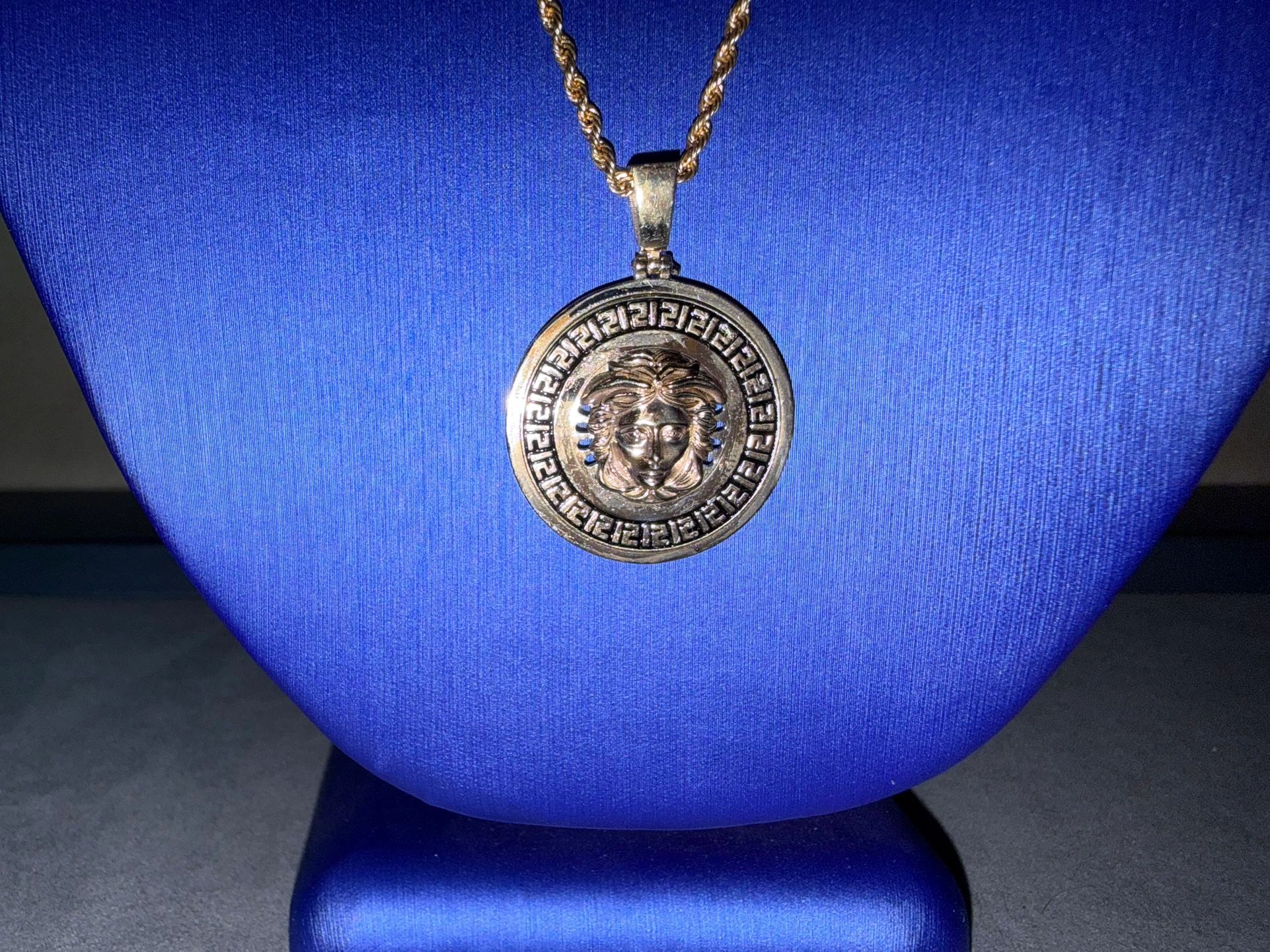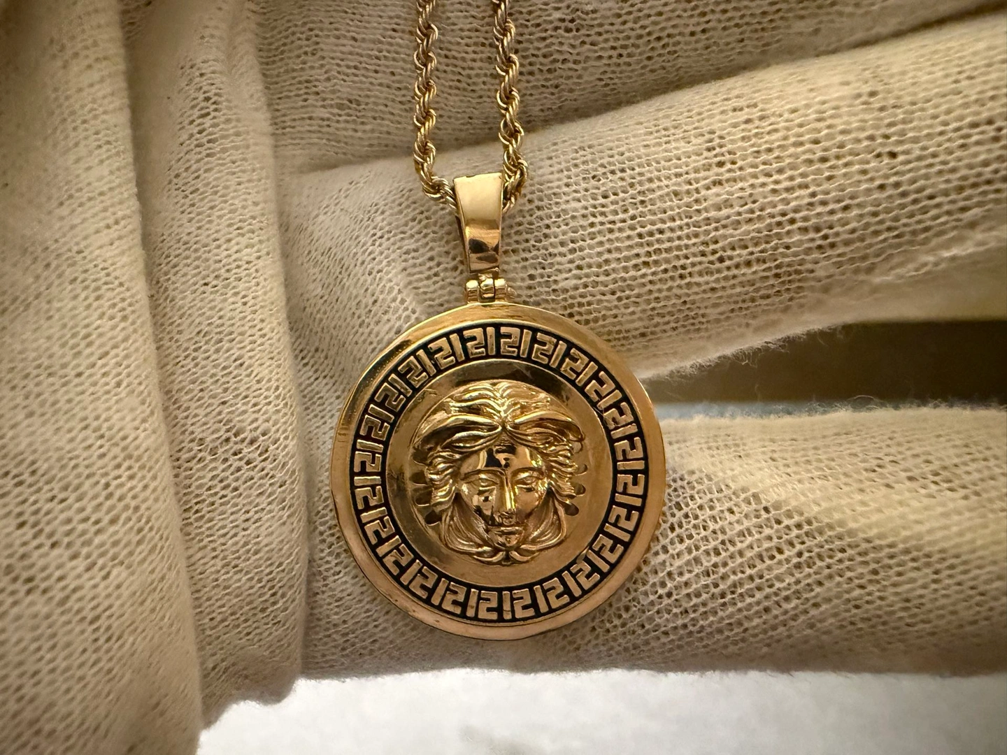 Exclusive Medusa pendant. It’s 14k real solid gold, 10 grams. Good quality is not cheap. Items can be sold separately, but you save more when you buy them together. 14K Medusa Pendant 1,300 14K Gold rope chain 24” 3mm 600