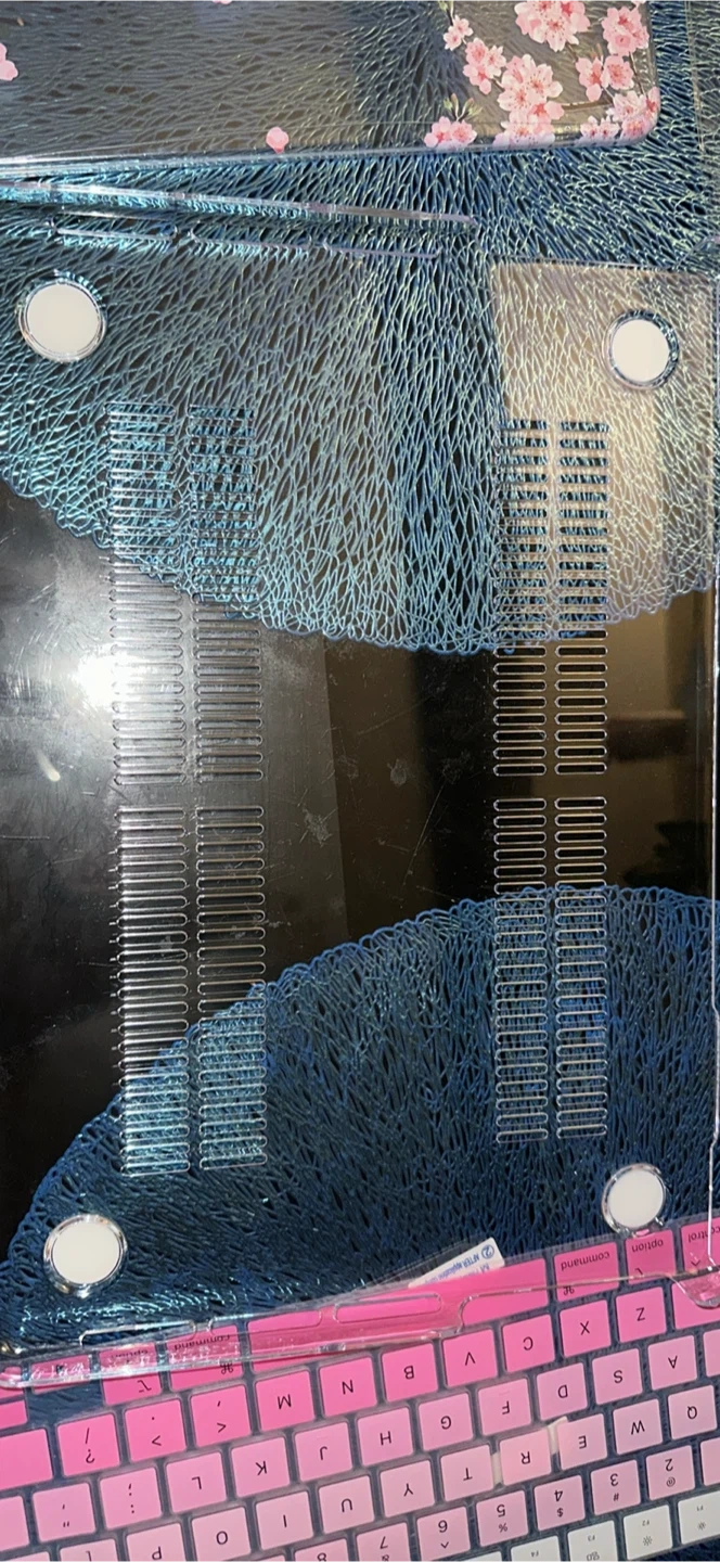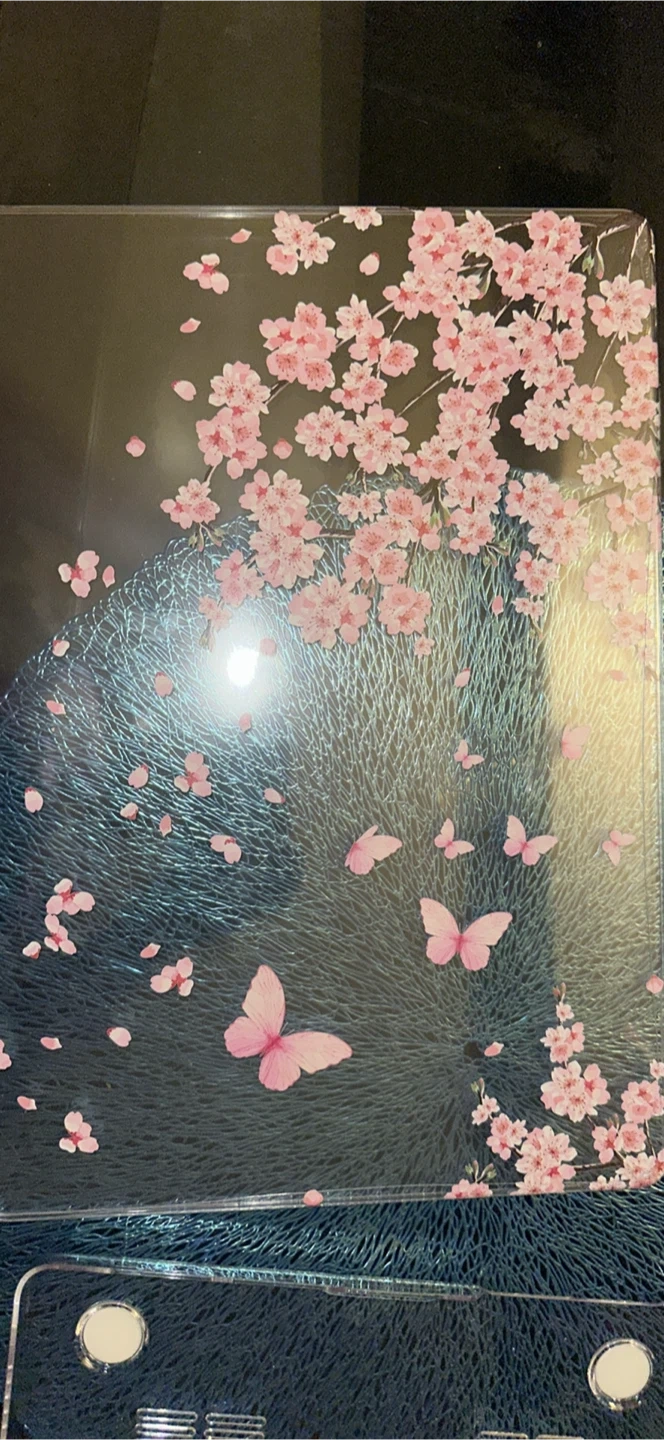 60I'm selling a MEEgoodo case for a 13-inch MacBook Air. It features a cherry blossom and butterfly design. Also included is a pink keyboard cover and trackpad film