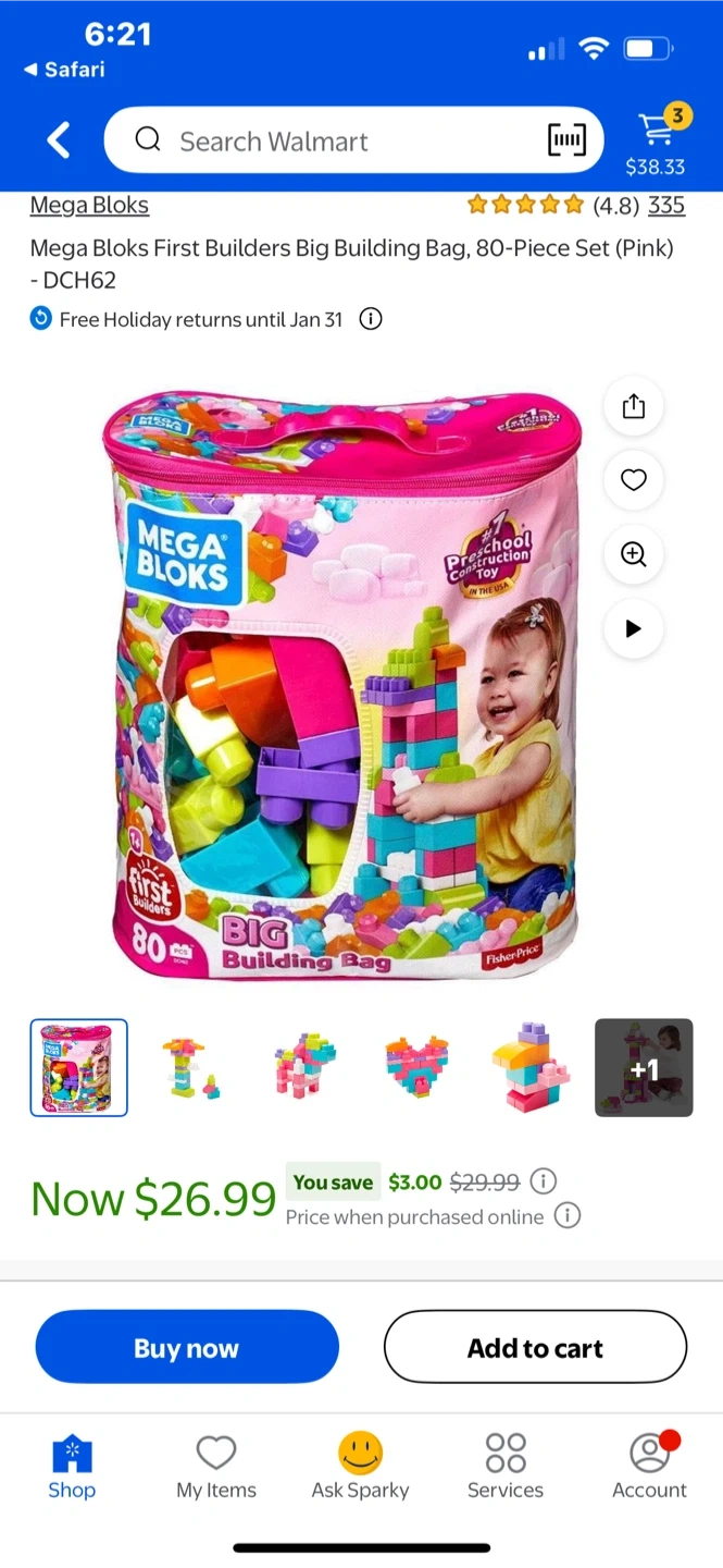 60Selling a bag of Mega Bloks First Builders Big Building Blocks! This set includes 80 pieces. Great for little ones who are just starting to explore building and construction. Originally $26.99!
