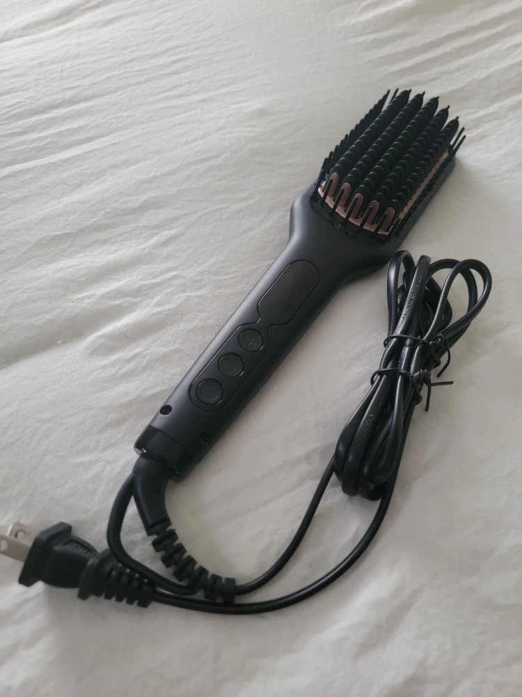 Hair straightening brush. Black with rose gold accents. Includes power cord. Gently used.