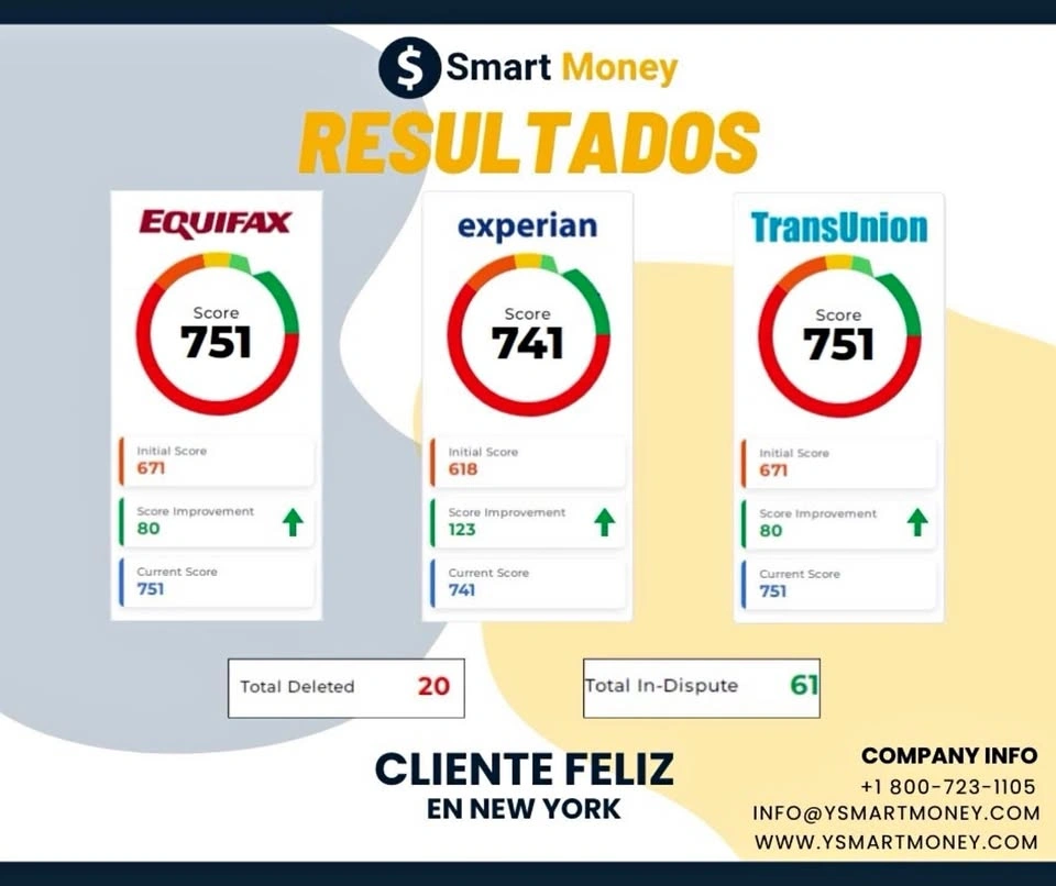 5We remove incorrect accounts and data from your credit report by cleaning it directly with the credit bureaus. Then, we connect you to our smart system that benefits you with the following services: Score tracker: Benefits you by tracking your credit and seeing it increase. Score Builder: Helps you rebuild your credit history. Score Booster: Can help give your credit a boost to increase it to the desired score. A $1 Million dollar insurance policy for fraud in case someone steals your identity, you can recover up to $1 Million dollars. Credit monitoring: With this, you can supervise how your credit grows month by month. Request a free consultation, each case is totally different. 1-800-713-8913 Service price: $150 per month for 12 months or until the credit is above 800 or the desired score.