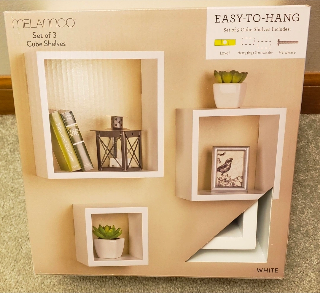 Selling a set of 3 Melannco cube shelves in white! They are easy to hang and come with a level, hanging template, and hardware. Perfect for adding a modern touch to any room Pick up in Naperville near naper blvd and 87th street or near downtown Naperville off of Chicago and Charles