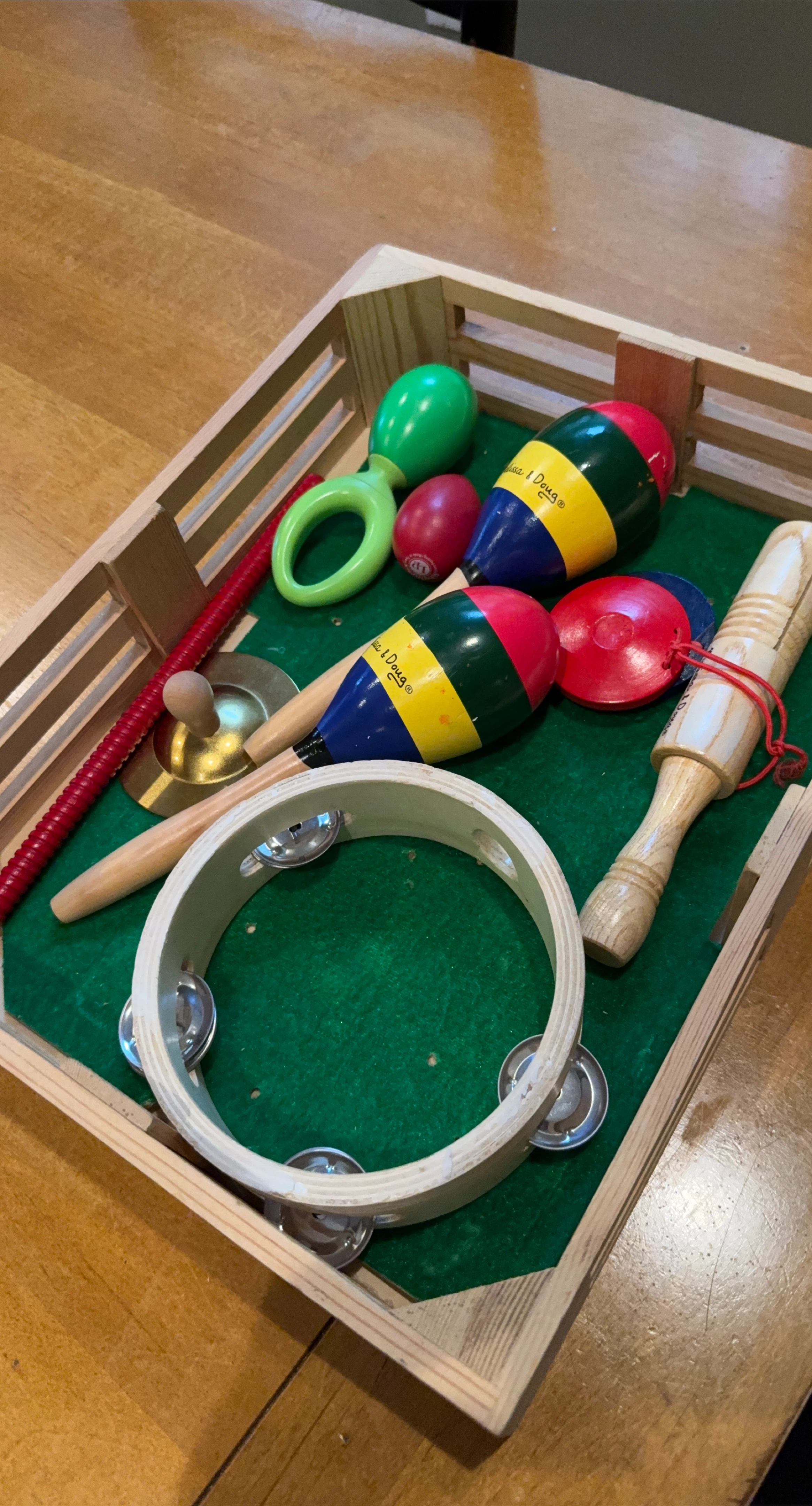 Get your little one started with music using this Melissa & Doug Band-in-a-Box! It includes a variety of instruments for hours of fun and exploration Some scratching on one maraca