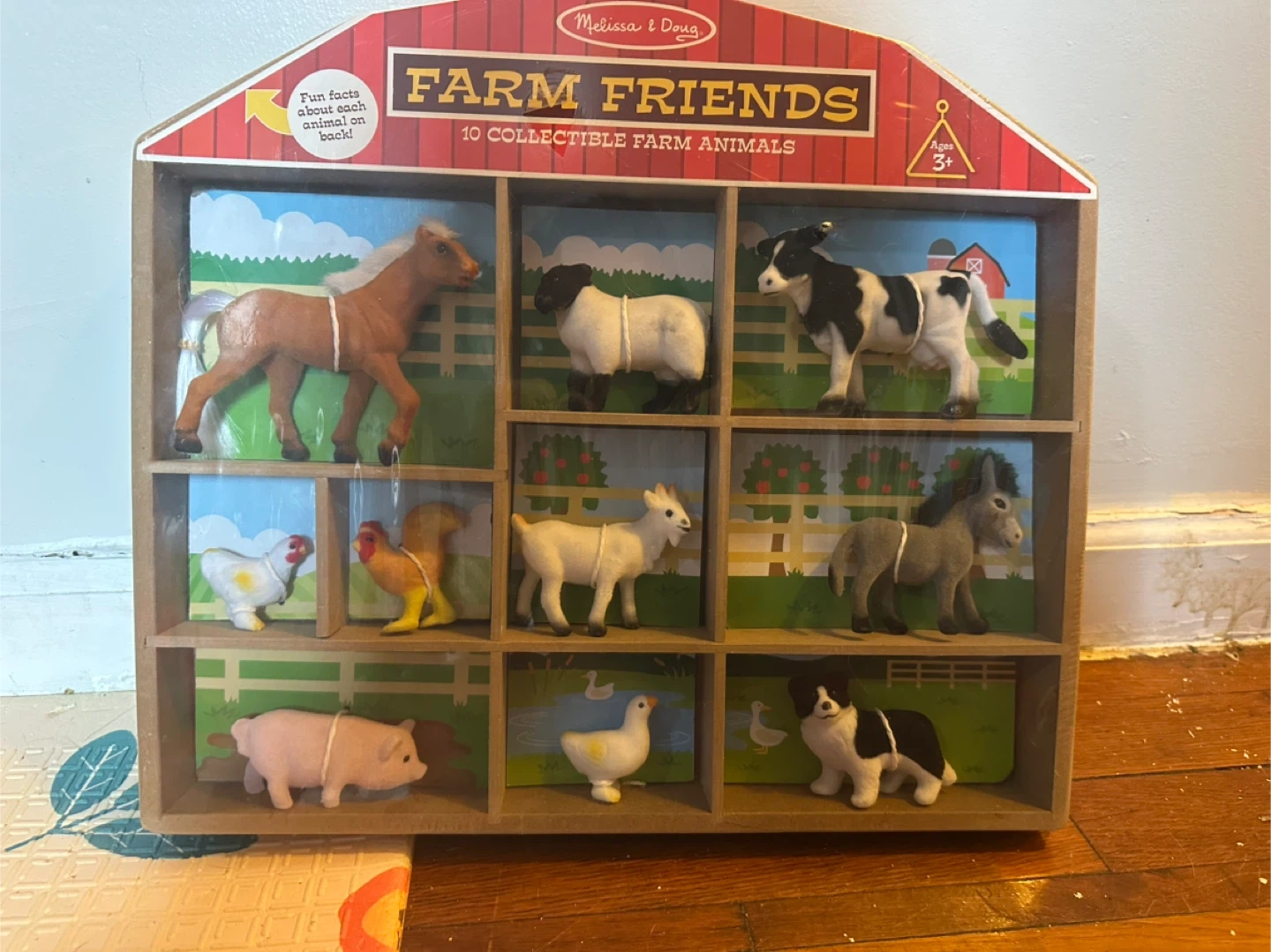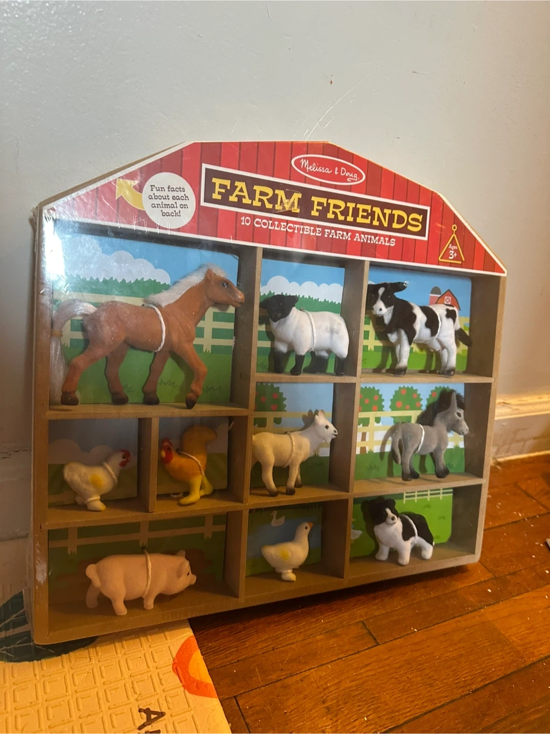 60Selling a set of Melissa & Doug Farm Friends, including 10 collectible farm animals! Perfect for kids aged 3+. This set comes in its original display case, making it great for both play and storage. Never used