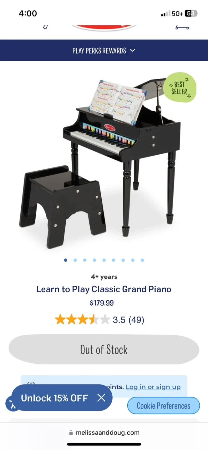 Selling a Melissa & Doug Learn to Play Classic Grand Piano! It's in great condition and perfect for kids 4+ years. This best seller originally retailed for $179.99