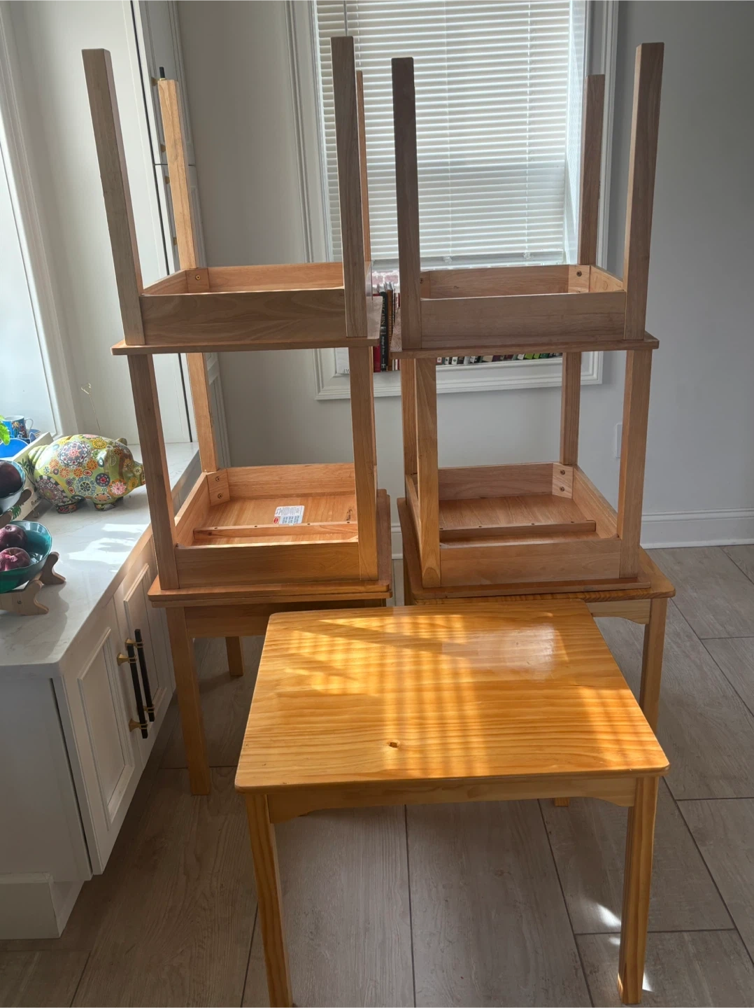 103Selling 18 Melissa and Doug Montessori wooden side tables. They are a light wood color and have a simple, clean design. Perfect for adding a touch of natural warmth to any room! They are worth $900 brand new.