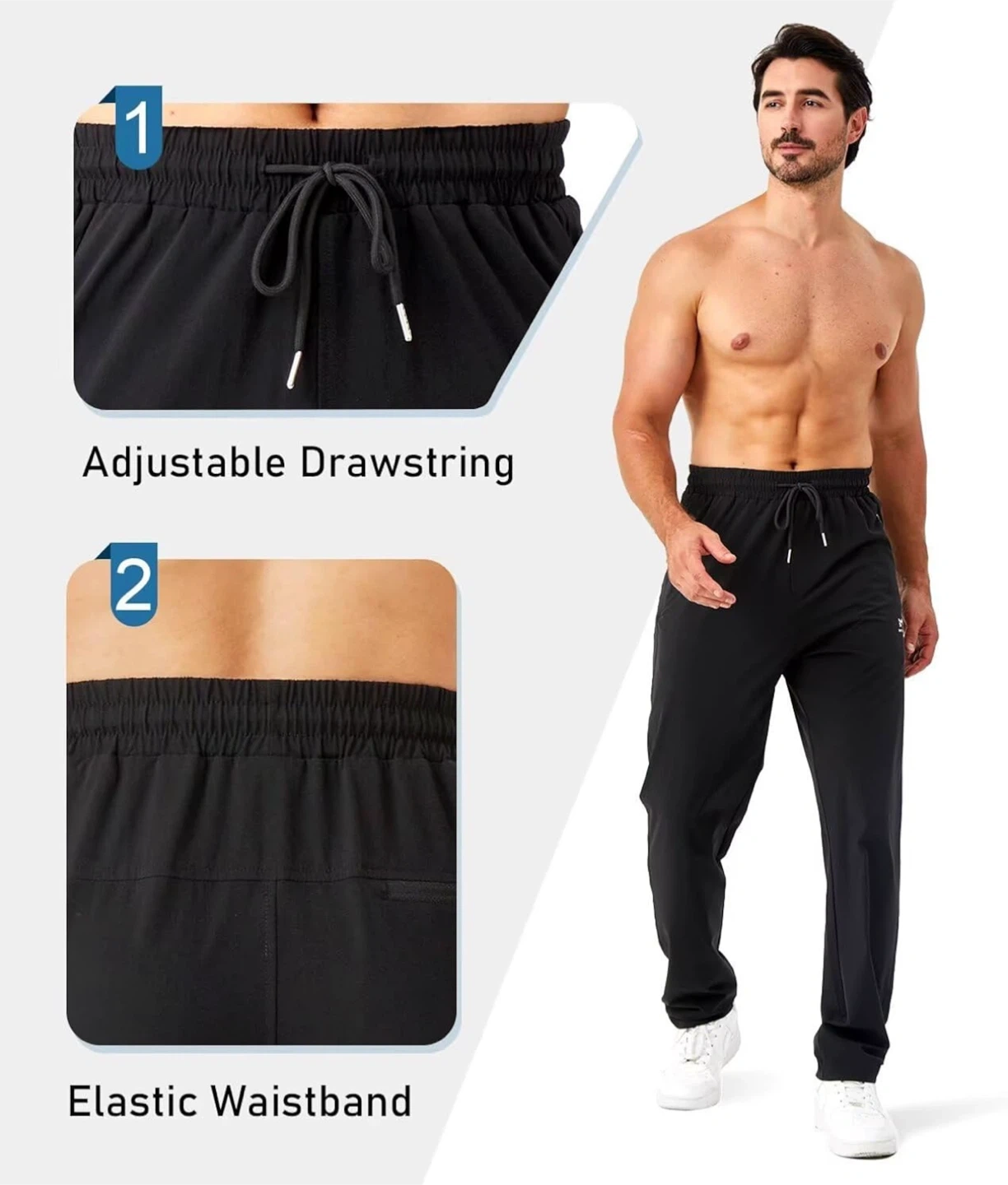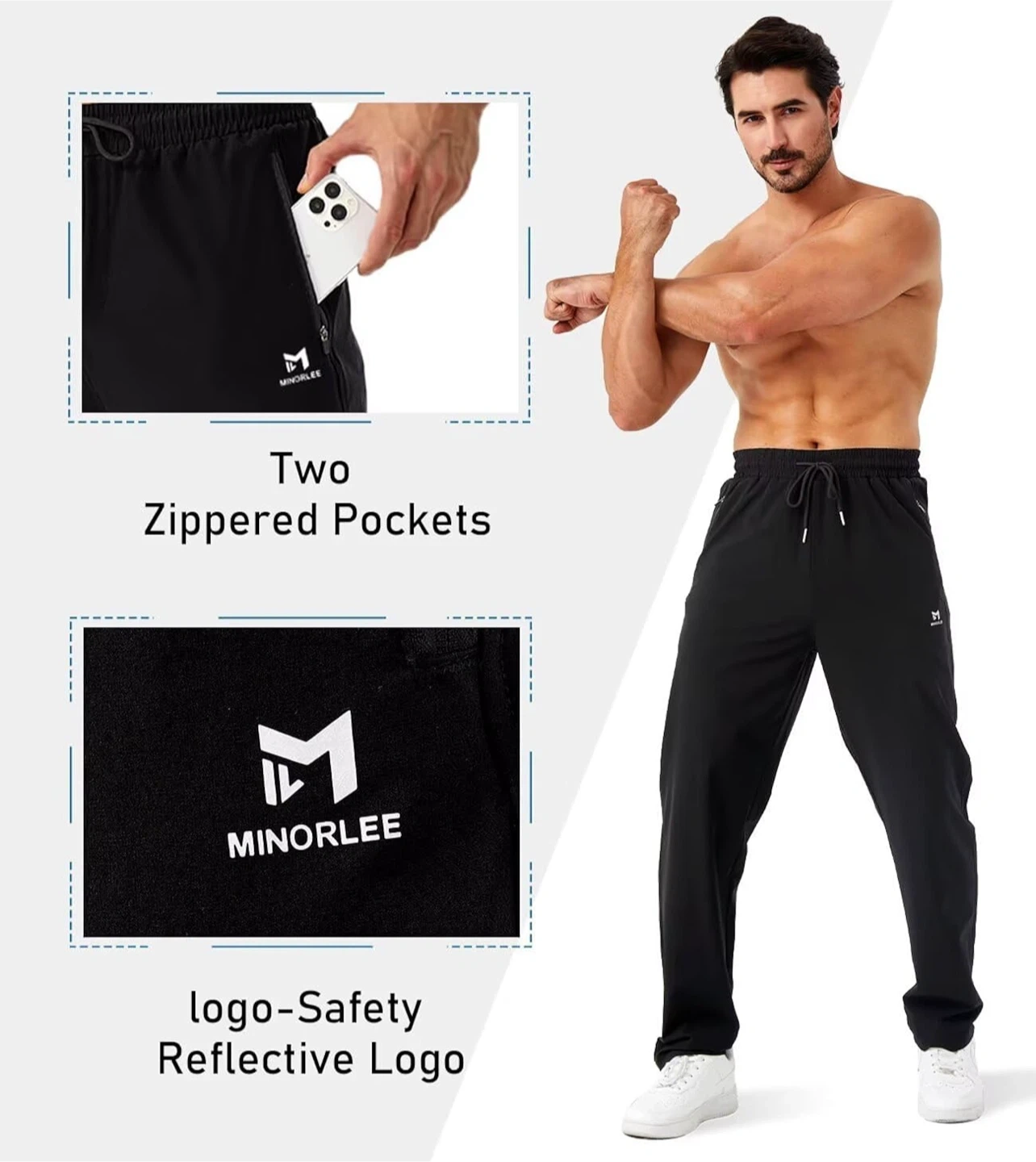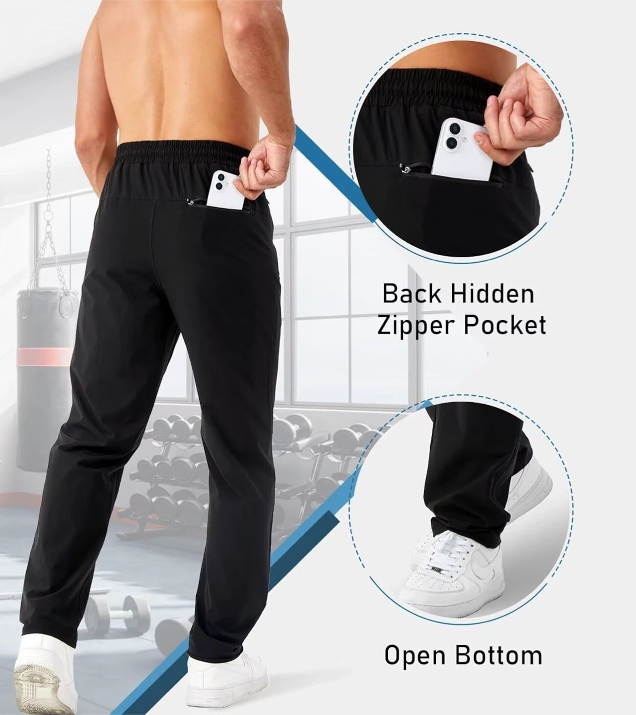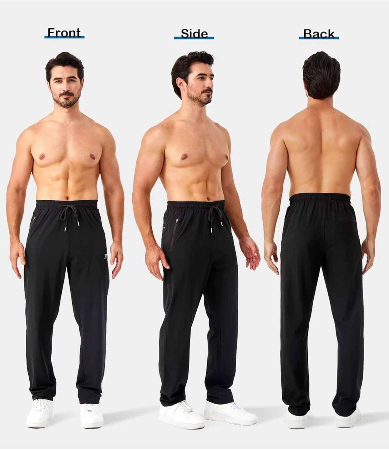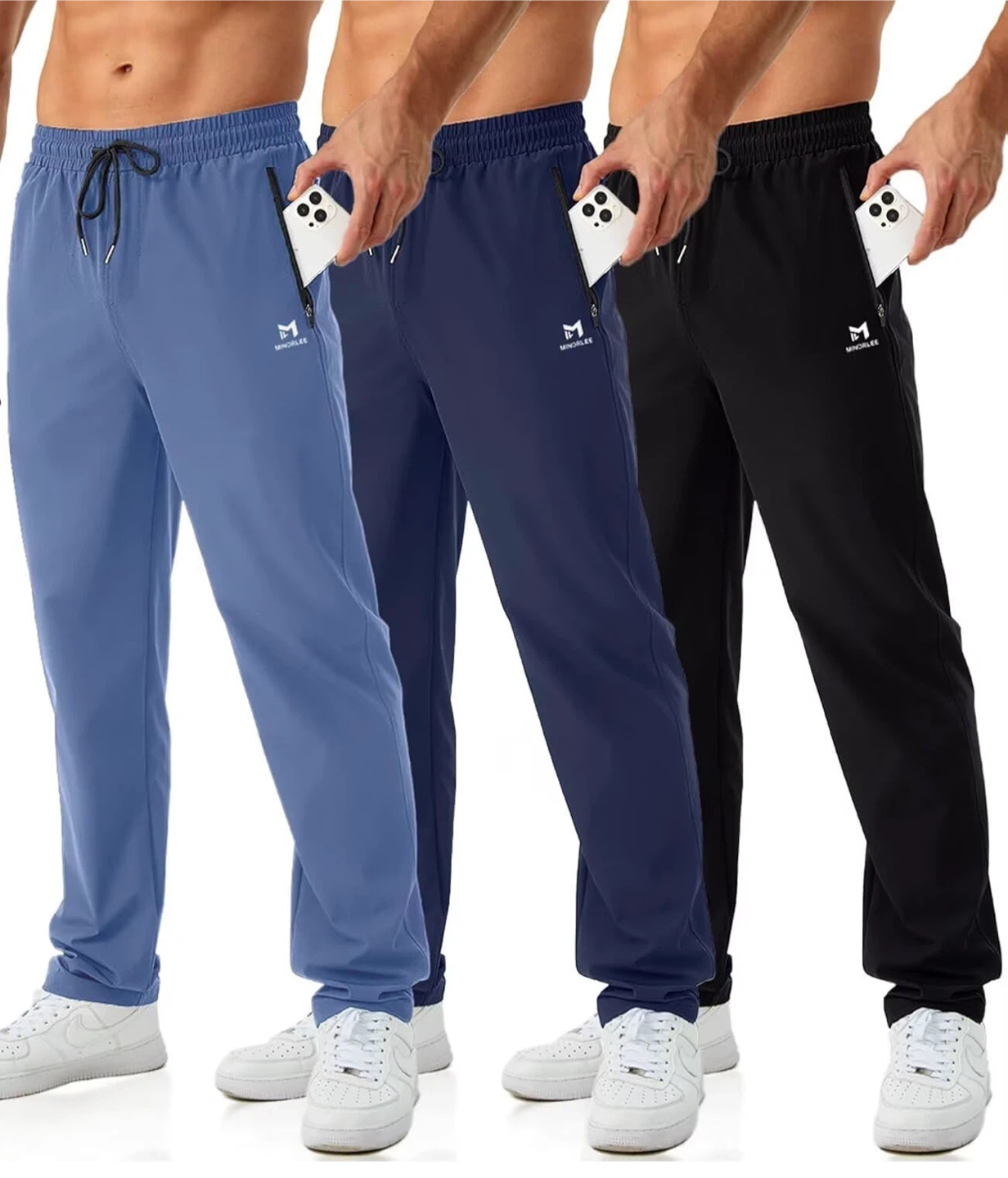 154Mens Joggers with Zipper Pockets Open Bottom Sweatpants for Men 3 Pack Lightweight Track Pants Men for Workout,Gym(large)