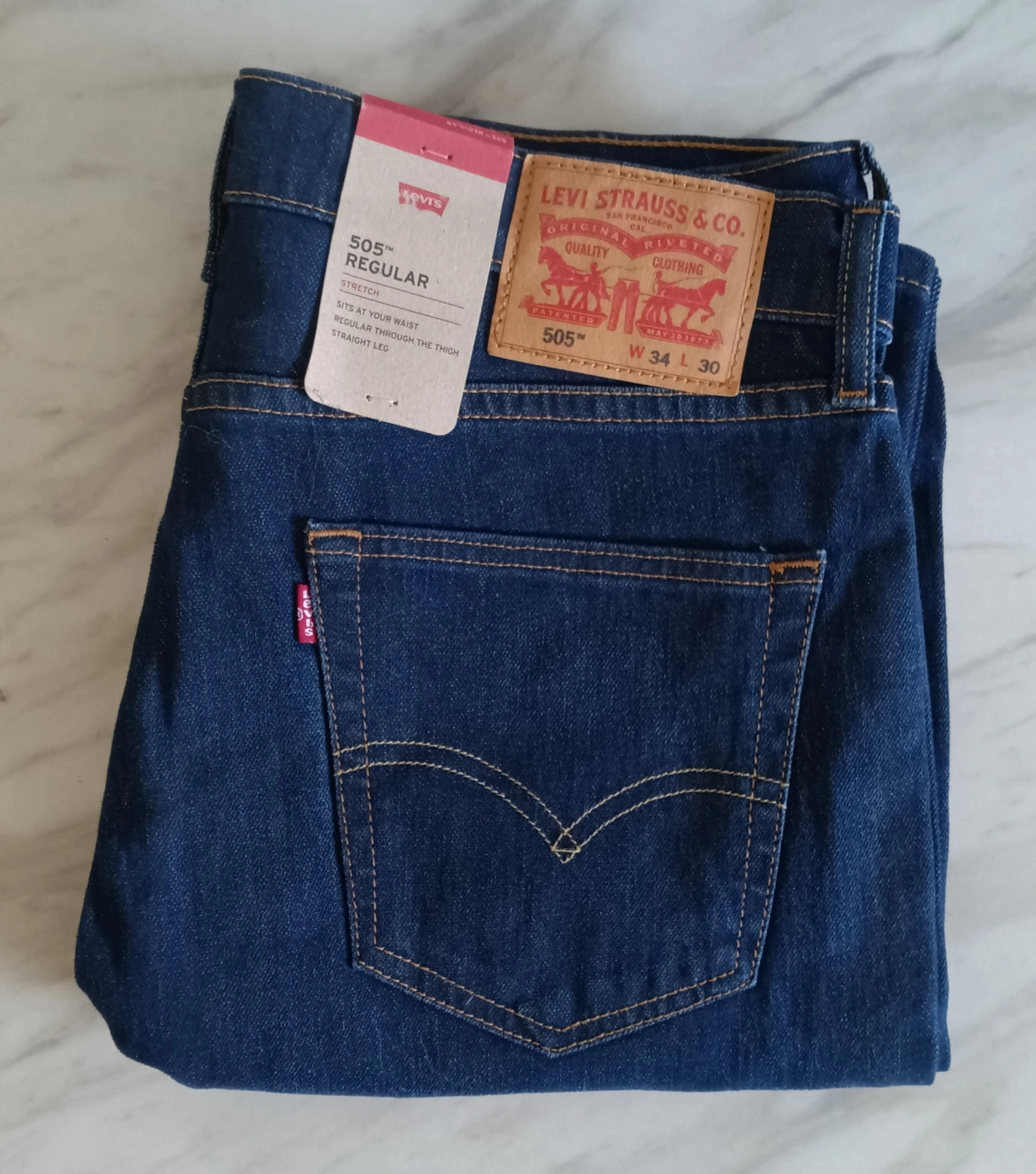 Men's Levi's 505 Regular Fit Jeans Size 34X30 Brand New $30 Firm. Product Features: 5-Pocket Zipper fly Stretch fabric Fit & Sizing: Regular fit Cut to sit at the waist Extra room in the thigh falls straight to the ankle Fabric & Care Cotton blend Machine wash