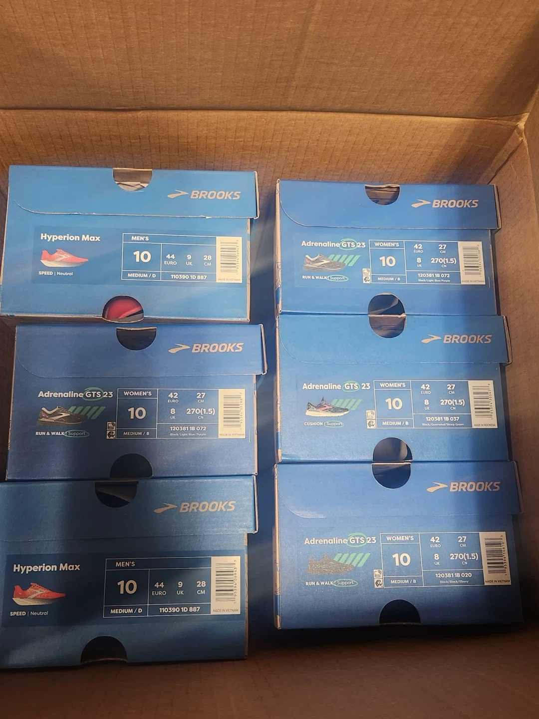 Selling Brooks Hyperion Max men's size 10 and Adrenaline GTS 23 women's size 10. Hyperion Max: - Men's - Size 10 US, 44 Euro, 9 UK, 28 CM - Speed | Neutral - Medium/D Adrenaline GTS 23: - Women's - Size 10 US, 42 Euro, 8 UK, 270(1.5) CM - Run & Walk Support - Medium/B - Color: Black/Light Blue/Purple